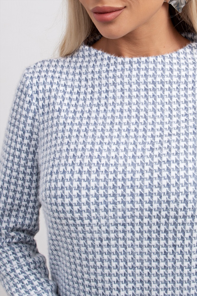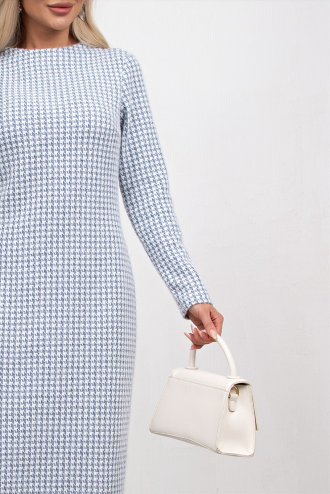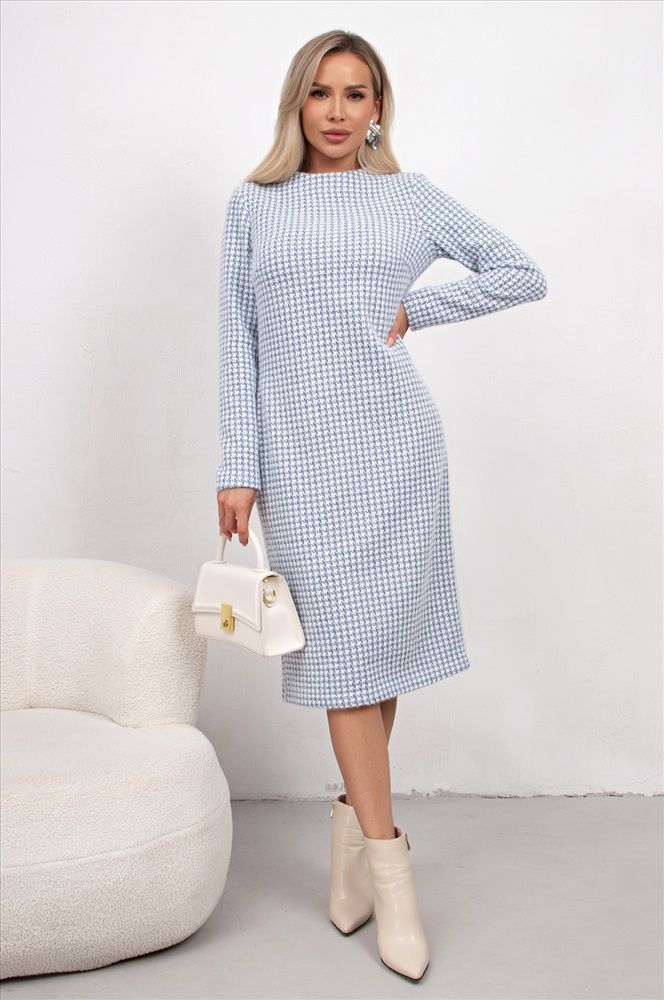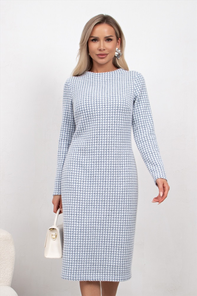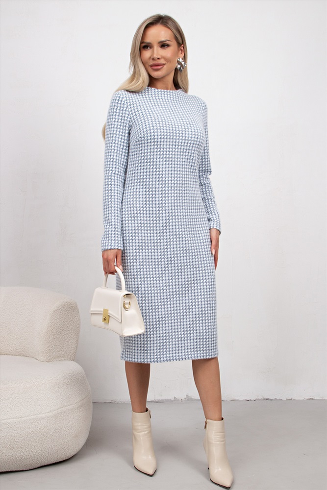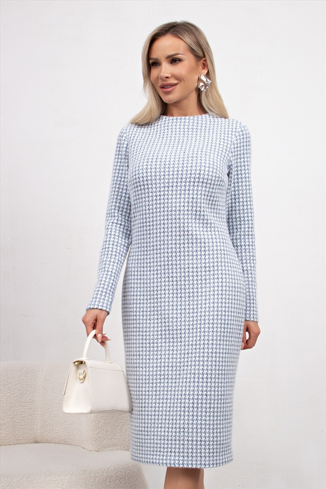 Комфортное платье прямого силуэта выполнено из трикотажного полотна Ангора. Горловина оформлена цельнокроеной стойкой - лодочка. Длинный втачной рукав. Низ ровный, без разрезов.