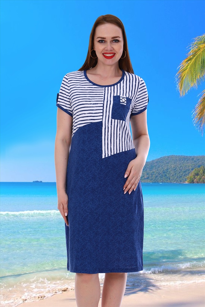 Состав: 100% хлопок Модель: Платье 1390 Тип товара: платье Материал: кулирка | кулирка Бренд: Натали Суслова Длина: средняя длина Карман: без карманов Назначение: для дачи | для дома Отделка: с карманами | с патами Рейтинг: Рейтинг 4 и выше Рисунок: полоска Рукав: короткий рукав Сезонность: лето | весна Силуэт: полуприлегающий Стиль: домашний Воротник: без воротника Застежка: без застежки Платье женское полуприлегающего силуэта из кулирки. Перед платья имеет асимметричный крой, нагрудный карман. Спинка на кокетке. Рукав короткий. Таблица размеров и веса