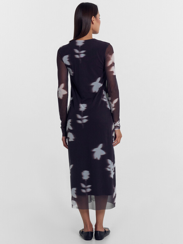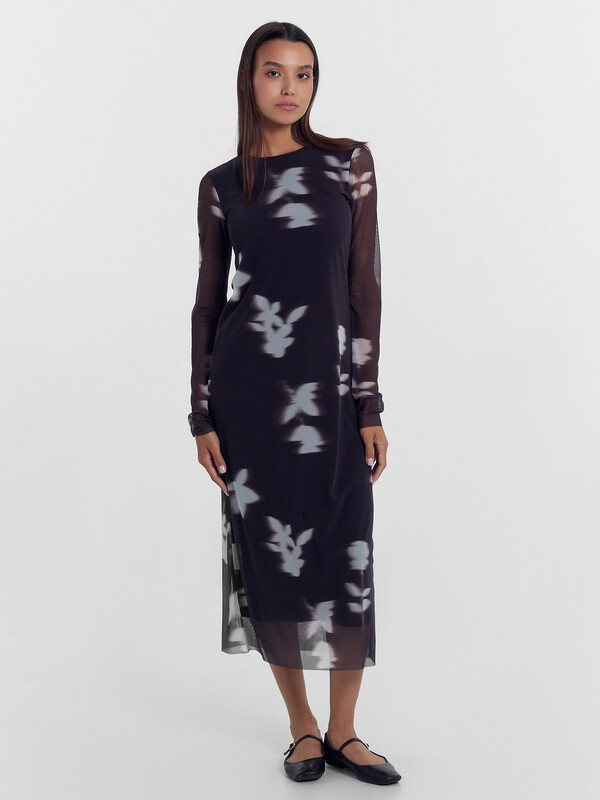 Платье женское полуприлегающего силуэта из трикотажного полотна сетка и трикотажного полотна кулирка.
