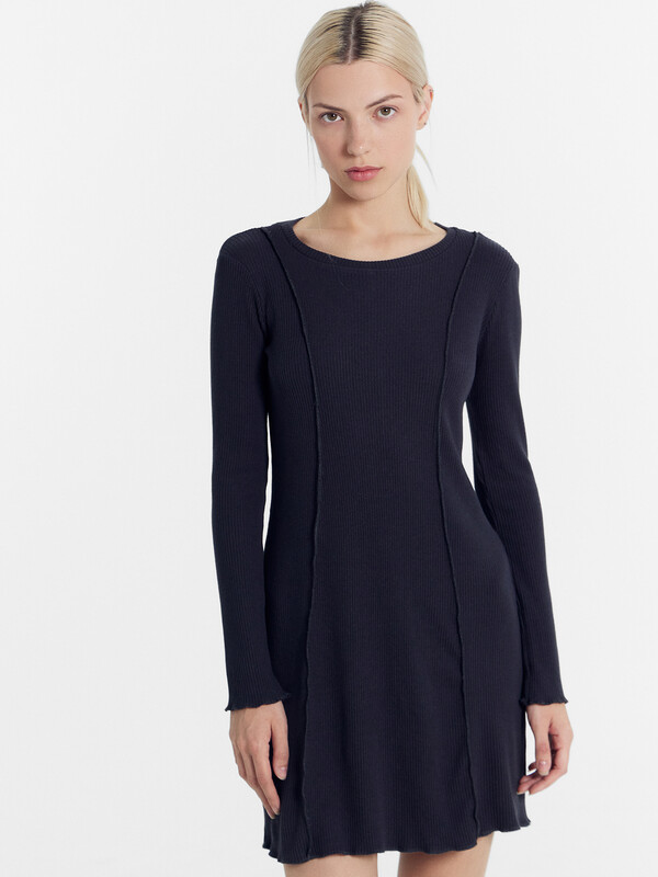 Платье женское полуприлегающего силуэта из трикотажного полотна рибана.