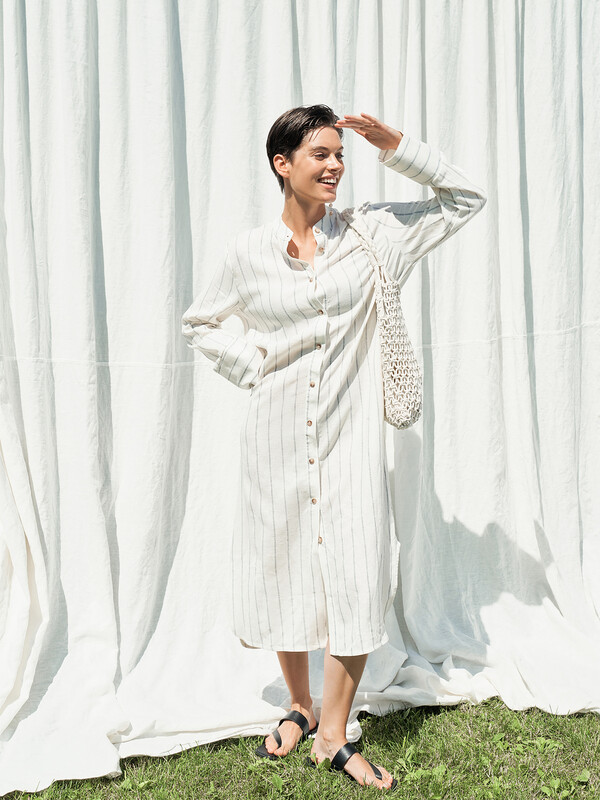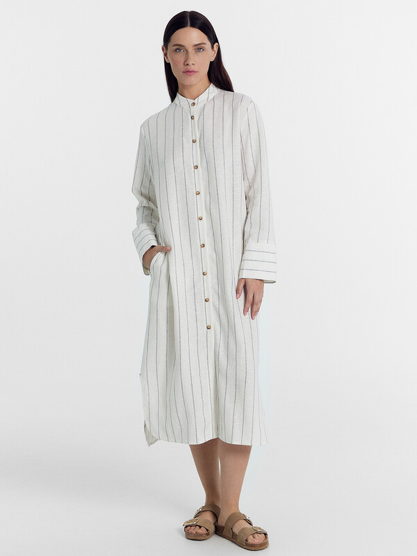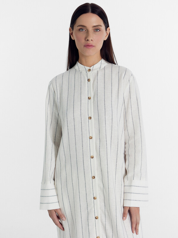 Платье рубашка женское прямого силуэта из ткани со льном.