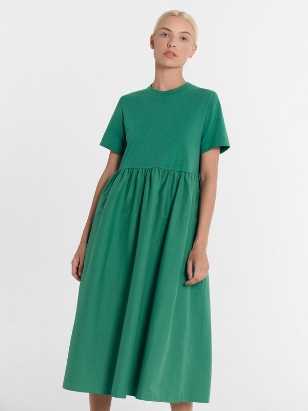 Платье женское свободного силуэта из трикотажного полотна кулирка и ткани.