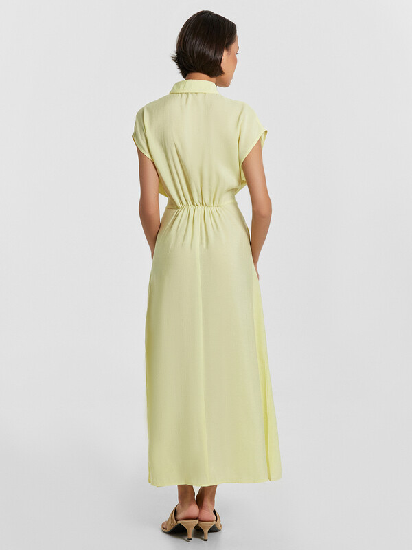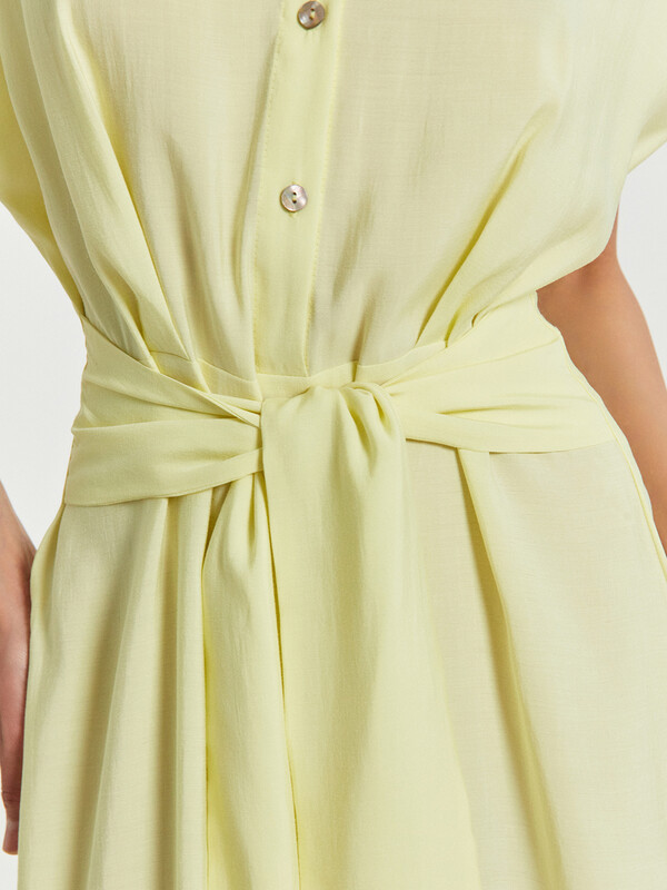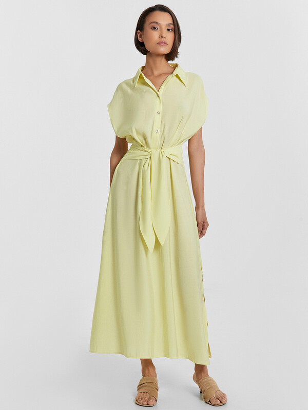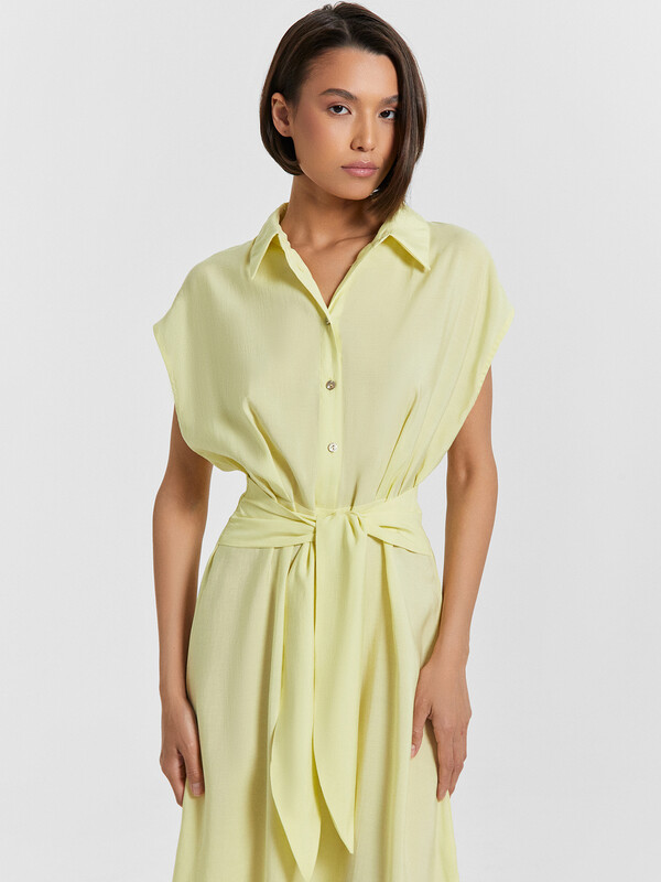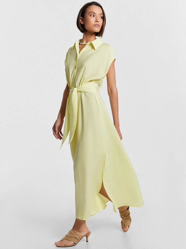 Элегантность и комфорт объединены в этом женском платье полуприлегающего силуэта. Эта модель создана для женщин, которые ценят стиль, свободу движений и внимание к деталям. Круглая горловина с аккуратным воротником-стойкой придает образу изысканности, а застежка планка с пуговицами на передней детали добавляет нотку классики. Эластичная тесьма на талии обеспечивает идеальную посадку, подчеркивая женственный силуэт, а широкий пояс, втачанный в боковые швы, привносит выразительность и завершенность в дизайн. Разрез в левом боковом шве добавляет легкость движениям, создавая ощущение воздушности и динамичности. Длина ниже колена делает платье универсальным: оно гармонично впишется как в повседневные образы, так и в элегантные сочетания для особых случаев. Изделие выполнено из смесового модала – мягкого, приятного к телу материала, который обеспечивает комфорт на протяжении всего дня. Это платье станет незаменимым элементом гардероба, позволяя создавать стильные и удобные образы, подчеркивая индивидуальность и безупречный вкус.