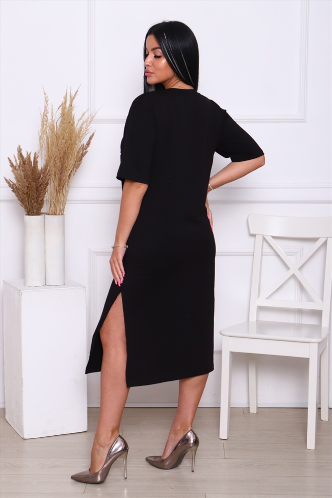 Это женское летнее платье - футболка черного цвета, которое станет вашим незаменимым повседневным гардеробом. Оно подходит для любых размеров и фигур, включая беременных девушек. Длинное платье имеет оверсайз крой, что позволяет вам чувствовать себя комфортно и свободно в любую температуру, движение не будет ограничено. А легкий, хлопковый материал, в сочетании с лайкрой, делает платье легким и удобным в носке, что особенно важно в жаркое время года. Вы можете носить это платье как на свадьбу или вечеринку, так и на работу или в шоппинге с босоножками и бейсболкой. Базовый черный цвет и универсальный крой позволяют вам экспериментировать с различными аксессуарами и создавать совершенно разные образы. Если вы хотите добавить яркости своему образу, выберите платье с принтом. А если нужно добавить форму, просто наденьте куртку и выглядите ещё более стильно и модно. Это платье - воплощение комфорта и красоты. Оно подходит для любого случая, от офисного костюма до летнего сарафана. Оно никогда не выйдет из моды и всегда будет актуальным. Не упустите возможность держать себя в форме и выглядеть красиво и модно. Купите это летнее платье сейчас и наслаждайтесь его эластичным кроем и формой. Оно станет вашим любимым вариантом в гардеробе на многие лета.