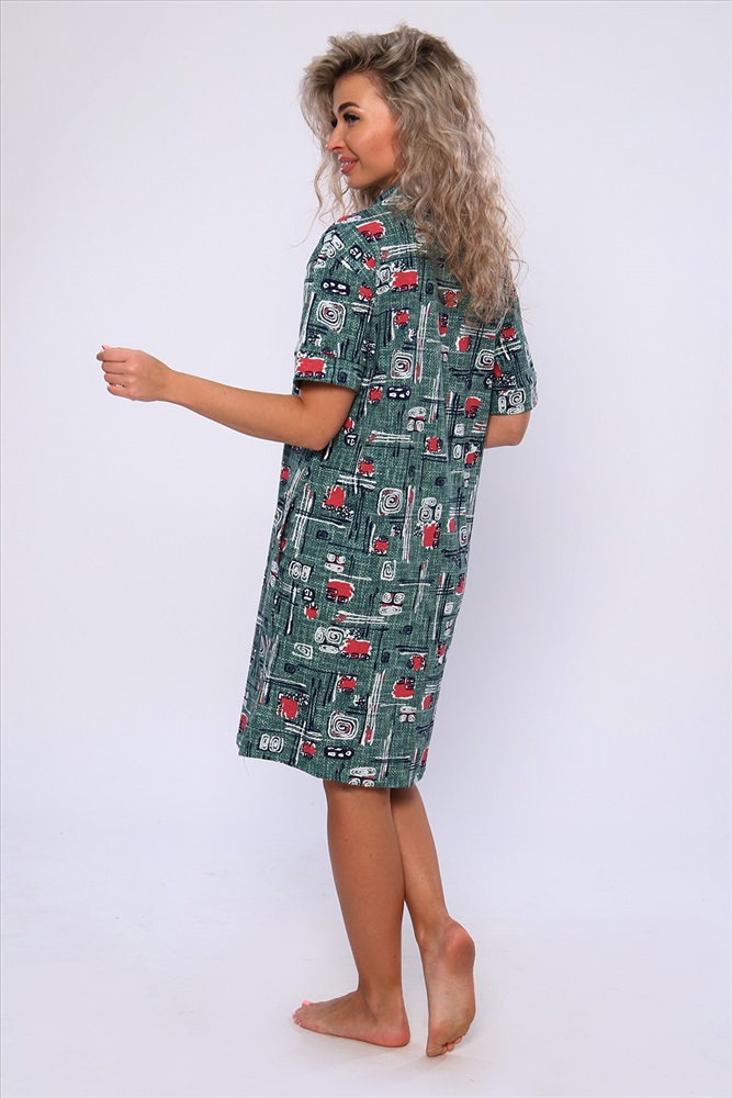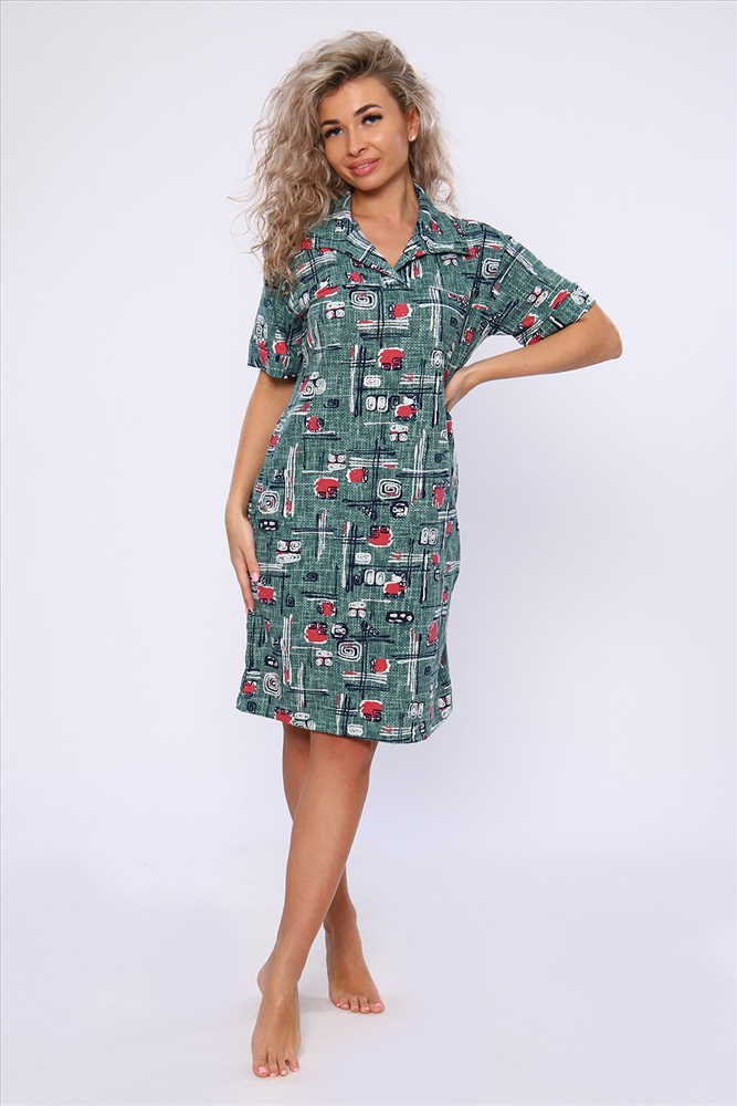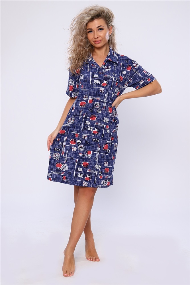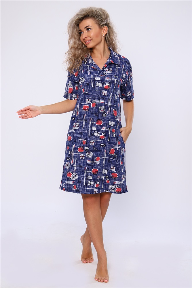 Состав: 100% хлопок Модель: Платье 59111 Тип товара: платье Материал: кулирка | кулирка Бренд: Натали Суслова Длина: средняя длина Карман: боковые Назначение: для дачи | для дома Отделка: с карманами | с манжетами Рисунок: разное Рукав: короткий рукав Сезонность: лето | осень | весна | зима Силуэт: полуприлегающий Стиль: домашний Воротник: рубашечный воротник Застежка: без застежки Платье полуприлегающего силуэта с короткими рукавами на манжетах, рубашечным воротником и боковыми карманами. Неотъемлемый элемент домашнего гардероба. Таблица размеров и веса