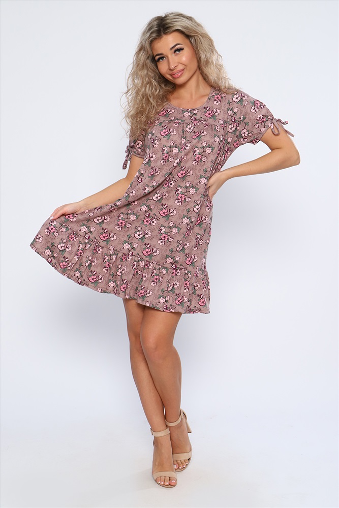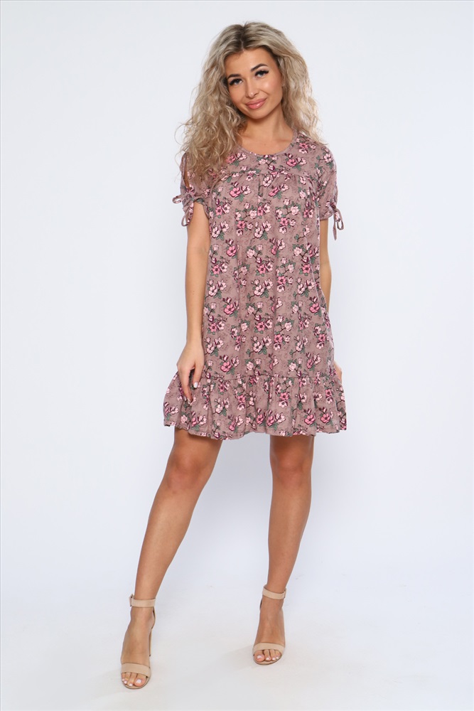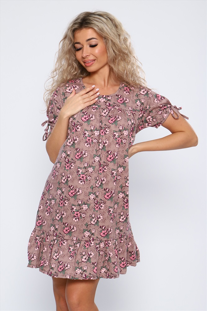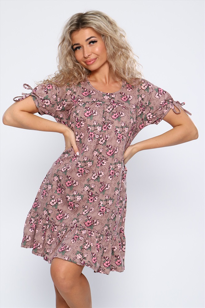 Состав: 100% хлопок Модель: Платье 59118 Тип товара: платье Материал: кулирка | кулирка Бренд: Натали Суслова Длина: средняя длина Карман: без карманов Назначение: для пляжа Отделка: с воланами | со складками Рисунок: цветы Рукав: короткий рукав Сезонность: лето | весна Силуэт: свободный Стиль: пляжный | повседневный Воротник: без воротника Застежка: без застежки Свободное летнее платье со сборкой над грудью и оборкой по низу изделия. Рукава короткие с разрезами и завязками. Необходимый элемент гардероба для легких образов. Таблица размеров и веса