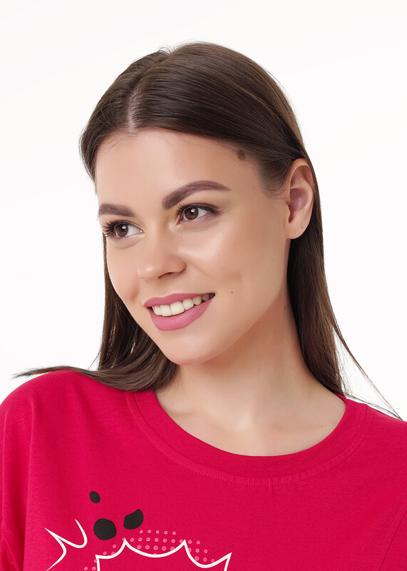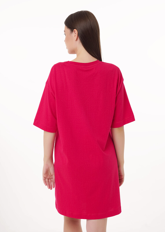 Платье для дома и отдыха из хлопкового трикотажного полотна прямого кроя. Округлая горловина с обтачкой. Короткий втачной рукав. По переду рез с разрезом .Спереди принт.