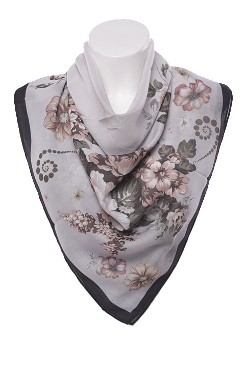 Платок из легкой хлопковой ткани с принтом. Обработка кромки - подрубка. Размер: 90 х 90 (+/- 2) см. Состав: хлопок, п/э. Сезон: весна, лето, осень. Производство Китай.