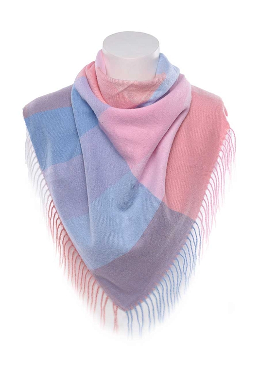 Платок мягкий, уютный, теплый. На двух противоположных краях платка кисти, два других заканчиваются кромкой. Размер: 100 х 100 см.(+/- 3 см.) Состав: шерсть, вискоза. Производство Китай.