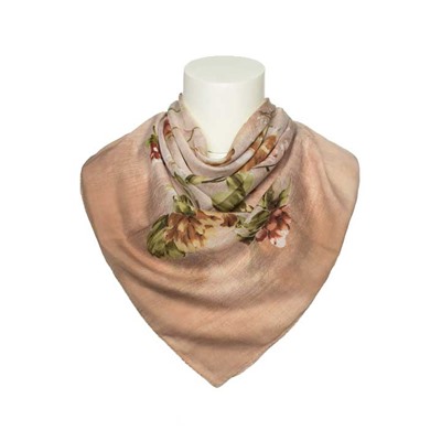 Легкий платок с цветочным принтом. Обработка кромки - подрубка. Размер 95 х 95 (+/-2) cм. Состав: полиэстер, хлопок.