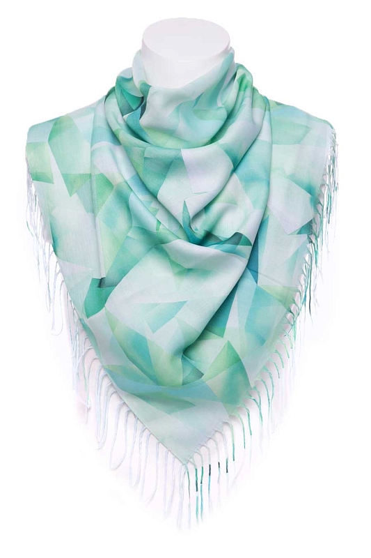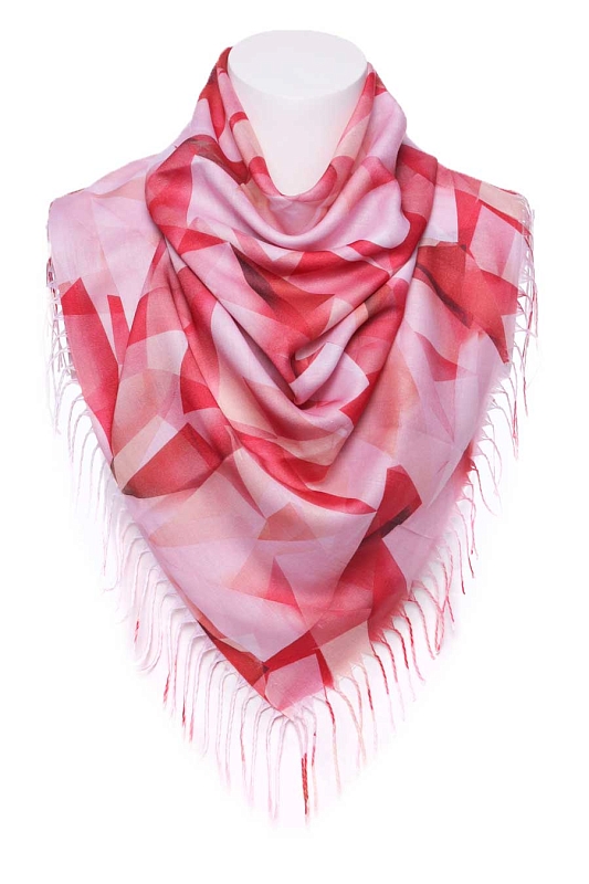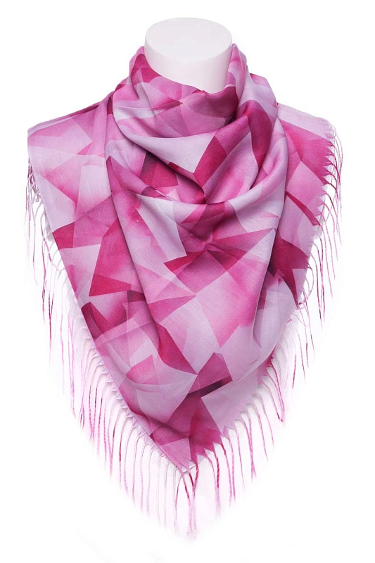 Платок из легкой хлопковой ткани. На двух противоположных краях платка кисти, два других заканчиваются кромкой.