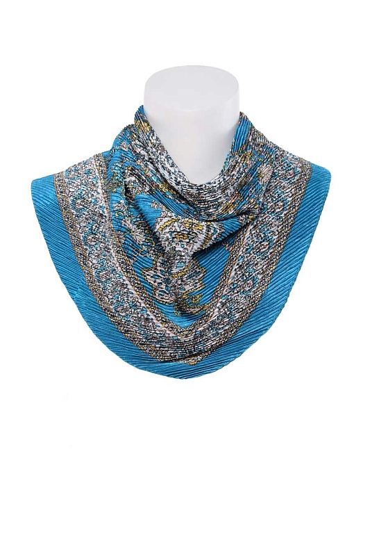 Гофрированный платок из принтованного креп-атласа. Обработка кромки - подрубка.