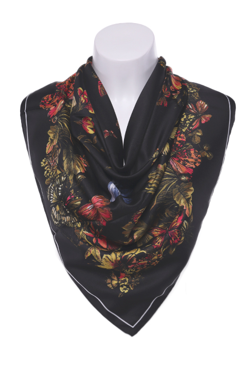 Платок из мягкого искусственного шелка с принтом. Обработка кромки-подрубка.