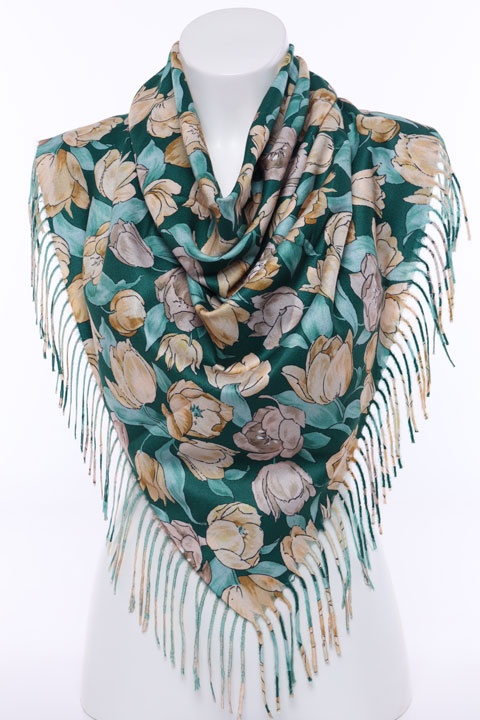 Мягкий, теплый платок. На двух противоположных краях кисти, два других заканчиваются кромкой. Размер: 100 х 100 см. (+/- 3 см.) Состав: вискоза, шерсть, п/э. Сезон: весна, осень.