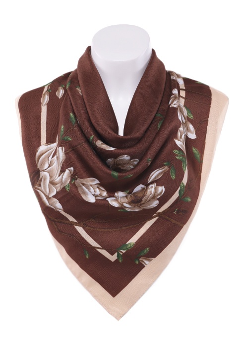Состав: Вискоза, шерсть Место: *10П2-2-К2 Мягкий платок с цветочным принтом. Оброботка кромки - подрубка. Комментарии к товару