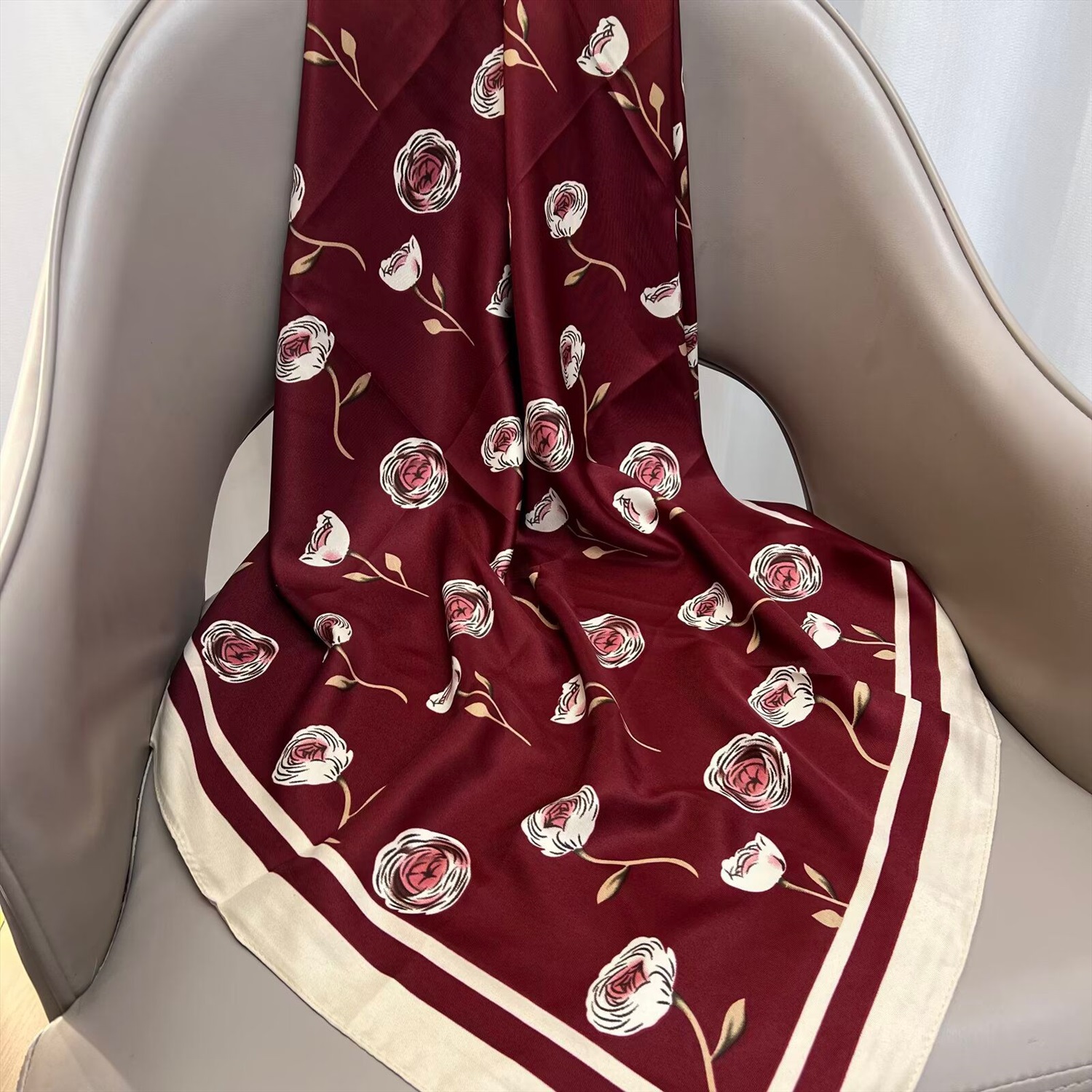 Платок шелковый на голову и шею весенний, мультицвет