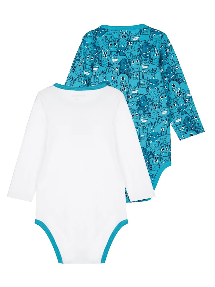 Боди с длинным рукавом из натурального хлопкового двойного трикотажа. 2 шт. в комплекте. 100% хлопок. Кнопки внизу – 2 ряда, боди растет вместе с малышом.