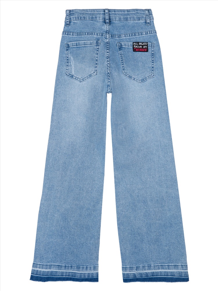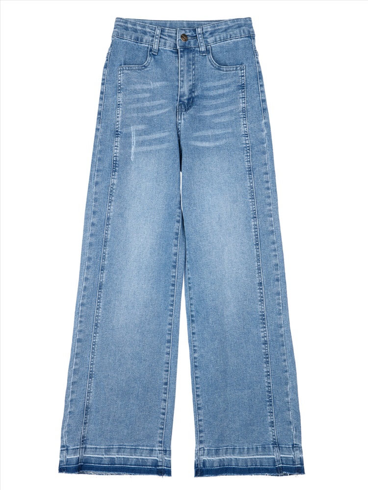 Джинсы для девочки. Застежка на пуговицу, пояс с внутренней утяжкой. Крой Wide leg ― это свободная посадка и расклёшенные от бедра штанины. Высокая посадка.