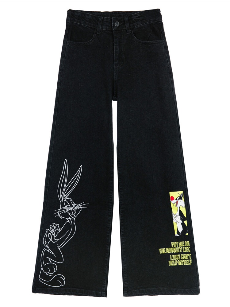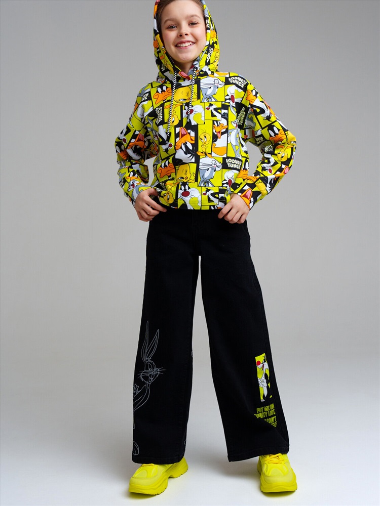 Джинсы для девочки. Застежка на пуговицу, пояс с внутренней утяжкой. Крой Wide leg ― это свободная посадка и расклёшенные от бедра штанины. Высокая посадка.
