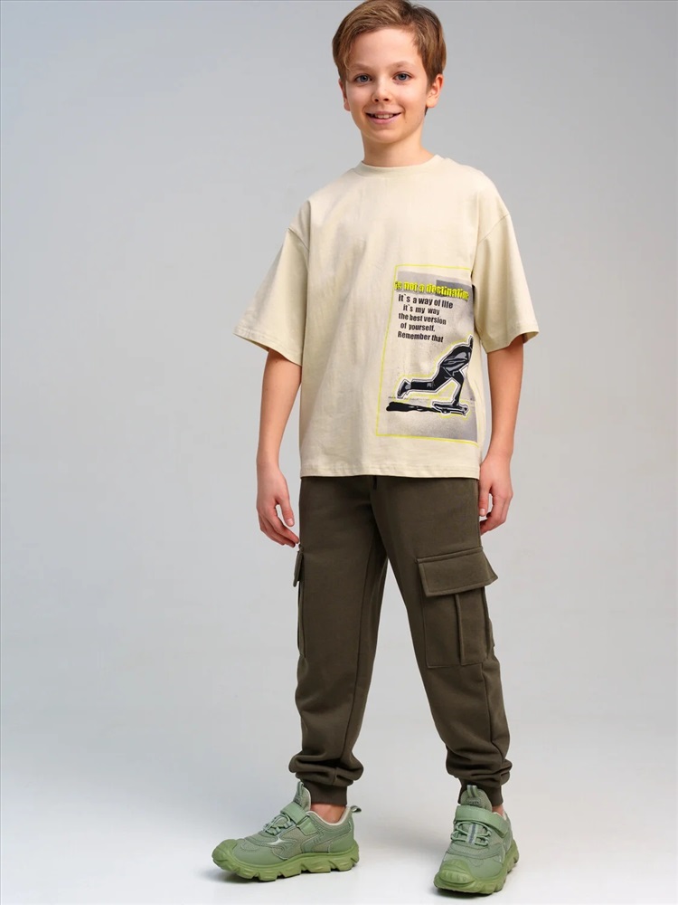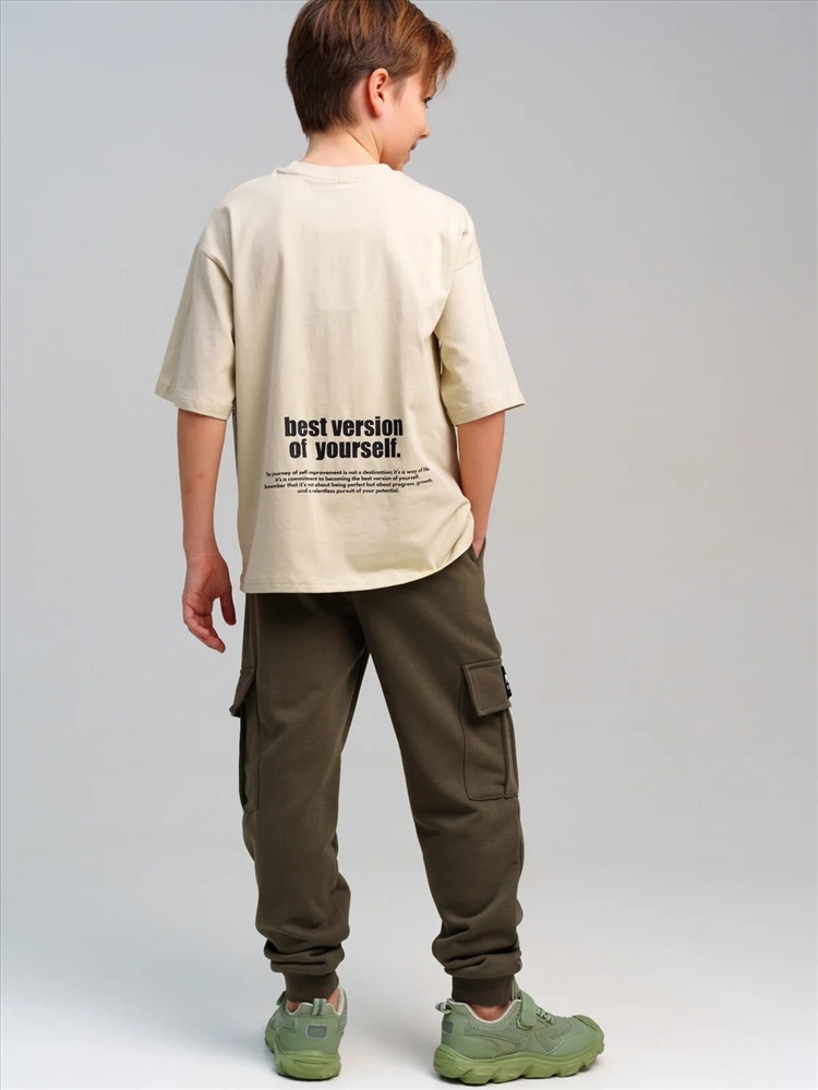 Брюки для мальчика подростка. Высокое содержание хлопка. Штаны на резинке со шнурком. Функциональные боковые и накладные карманы. Модель выполнена из качественного и приятного на ощупь трикотажа.
