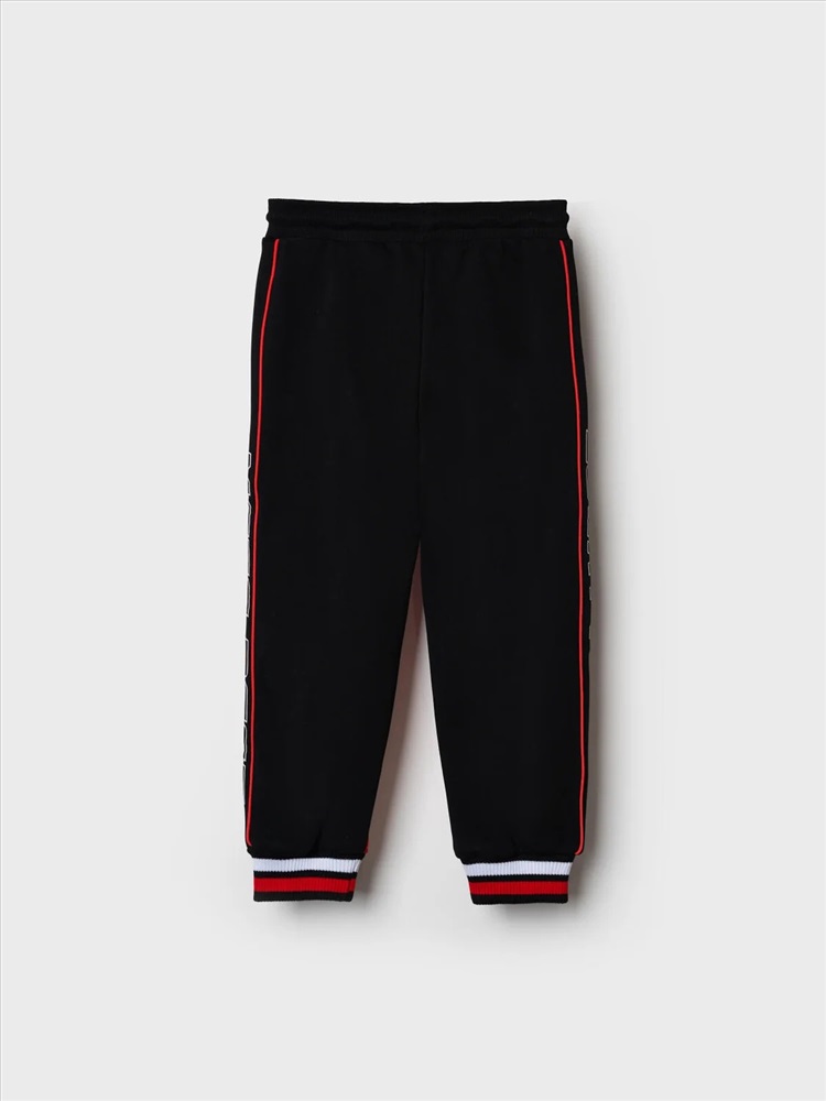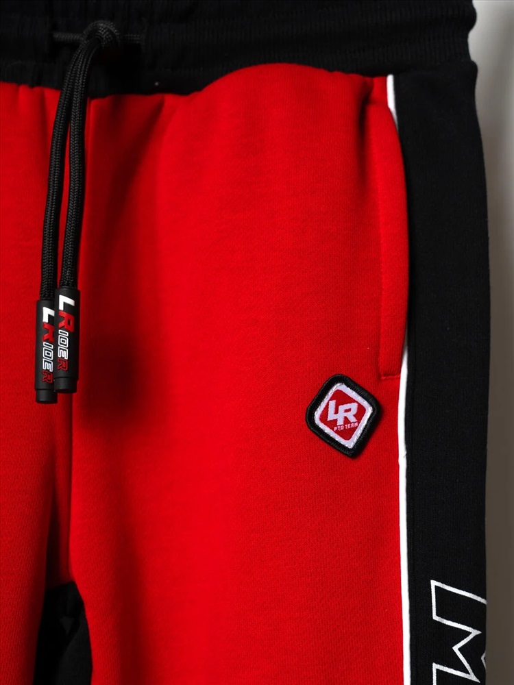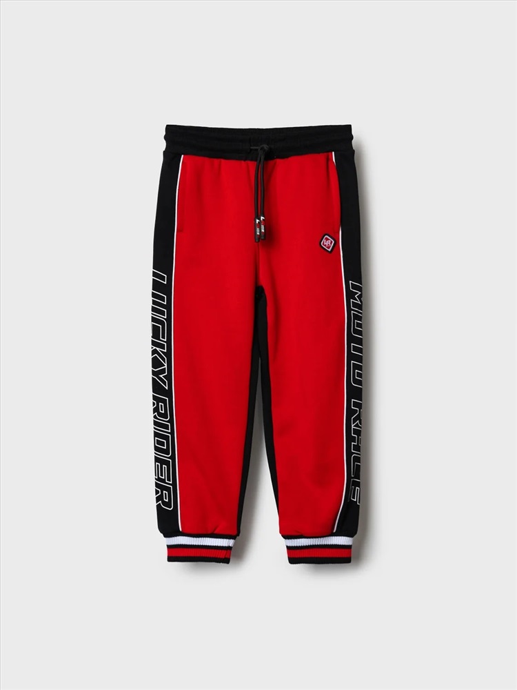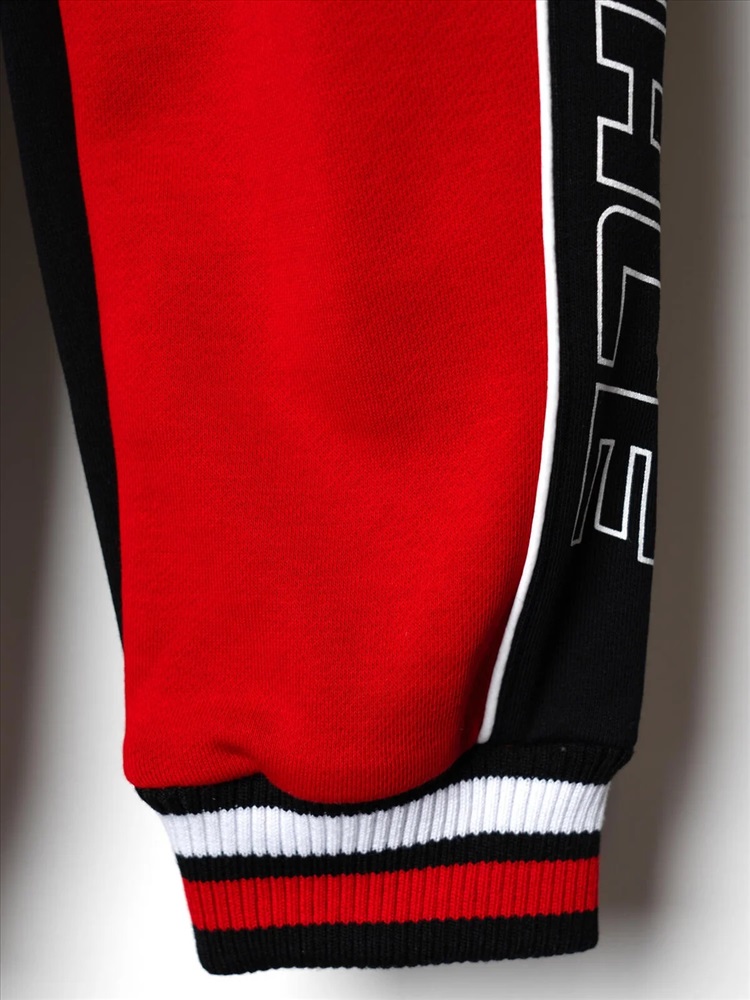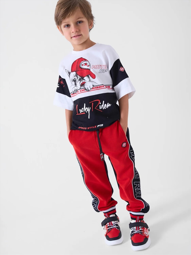 Брюки-джоггеры детские для мальчика. Выполнены из хлопкового трикотажа футер без начеса. Модель прямого кроя со средней посадкой на талии. Пояс выполнен на резинке, дополнительно регулируется шнурком. По бокам — удобные карманы. В нижней части брючин предусмотрены эластичные трикотажные манжеты для лучшей фиксации. Брюки украшены лампасами, принтами и нашивкой в гоночной тематике.