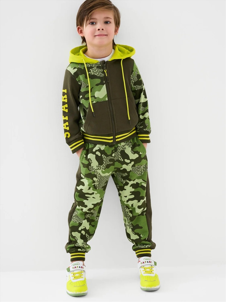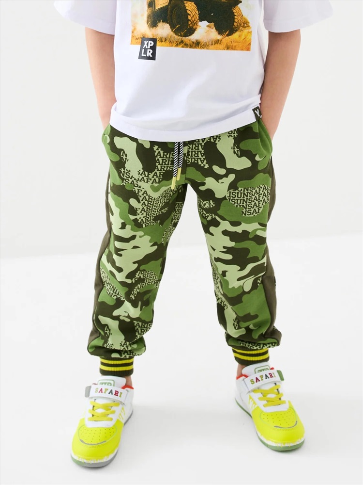 Брюки-джоггеры детские в стиле милитари для мальчика. Выполнены из хлопкового трикотажа футер без начеса. Модель прямого кроя со средней посадкой на талии. Пояс выполнен на резинке, дополнительно регулируется шнурком. По бокам — удобные карманы. В нижней части брючин предусмотрены эластичные трикотажные манжеты для лучшей фиксации.