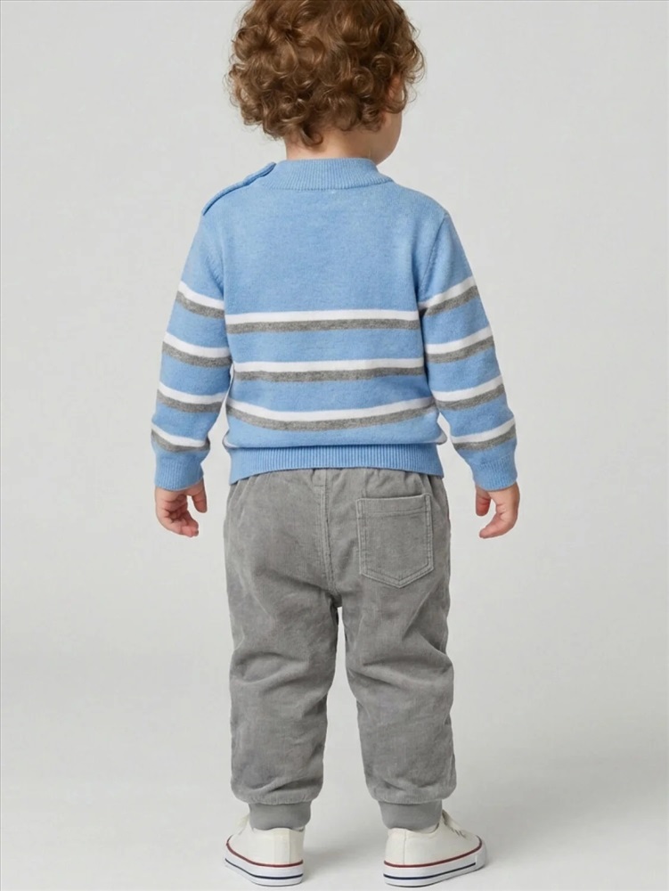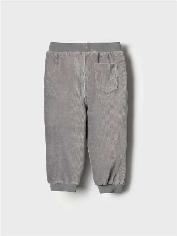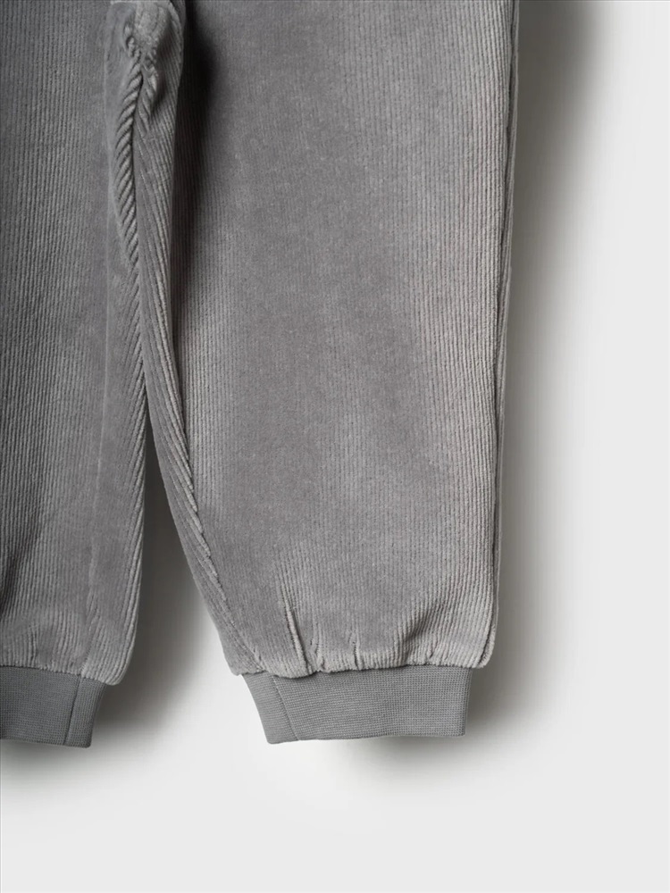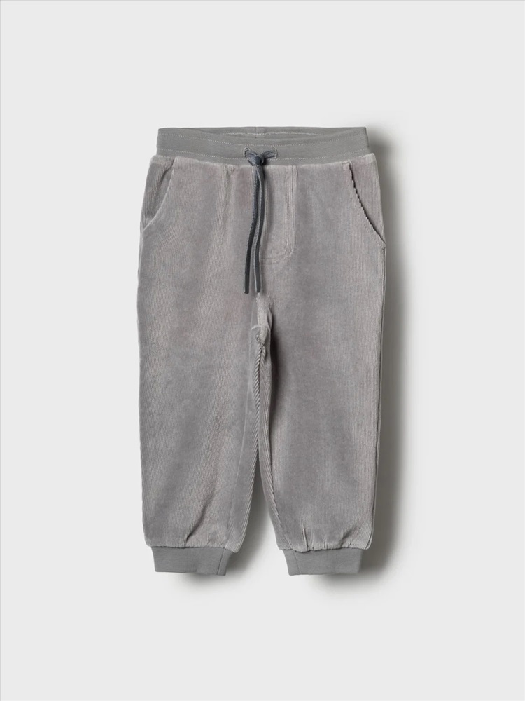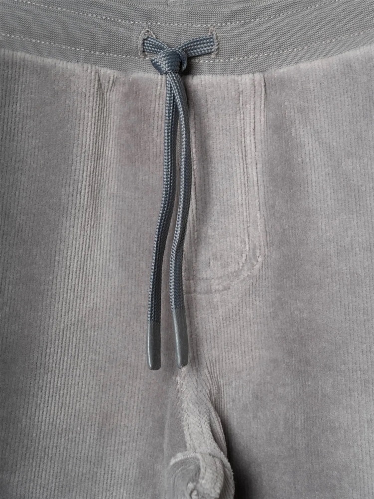 Детские брюки для мальчика. Модель выполнена из хлопкового велюрового трикотажа. Оснащены эластичным поясом с декоративным шнуром и манжетами по низу штанин, что обеспечивает хорошую посадку. Спереди расположены два удобных боковых кармана, а сзади — один накладной карман.