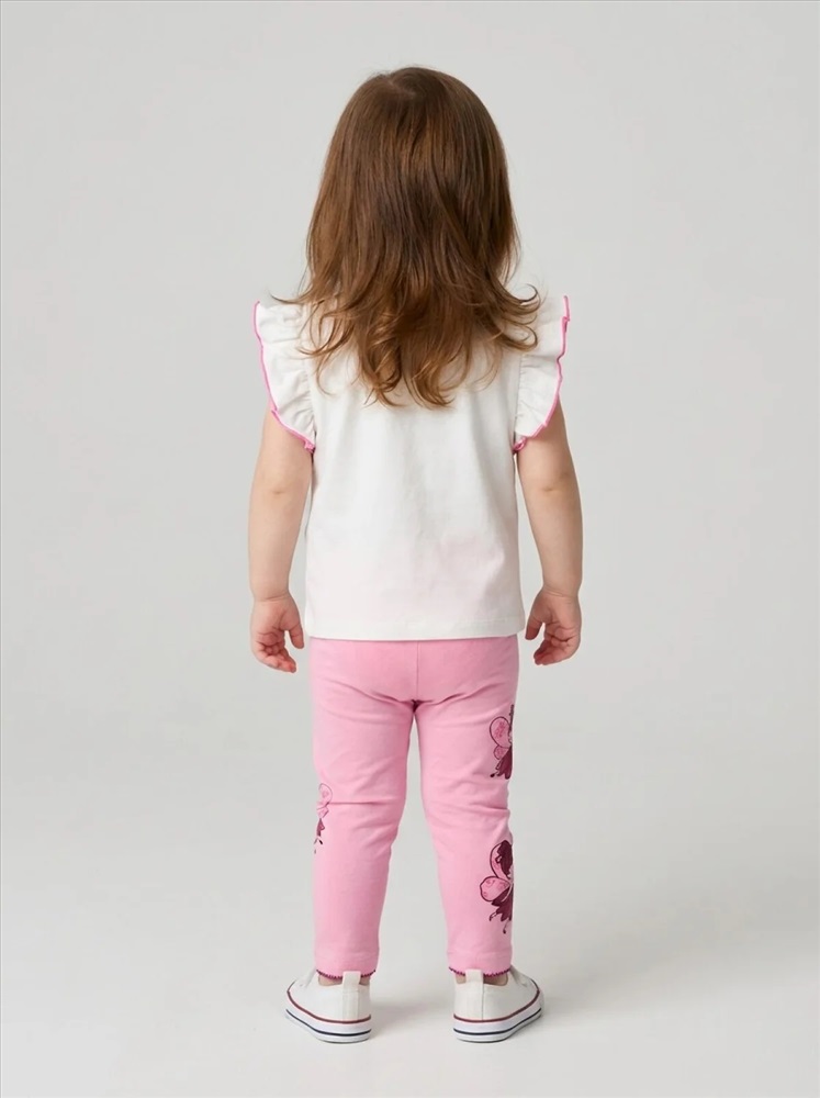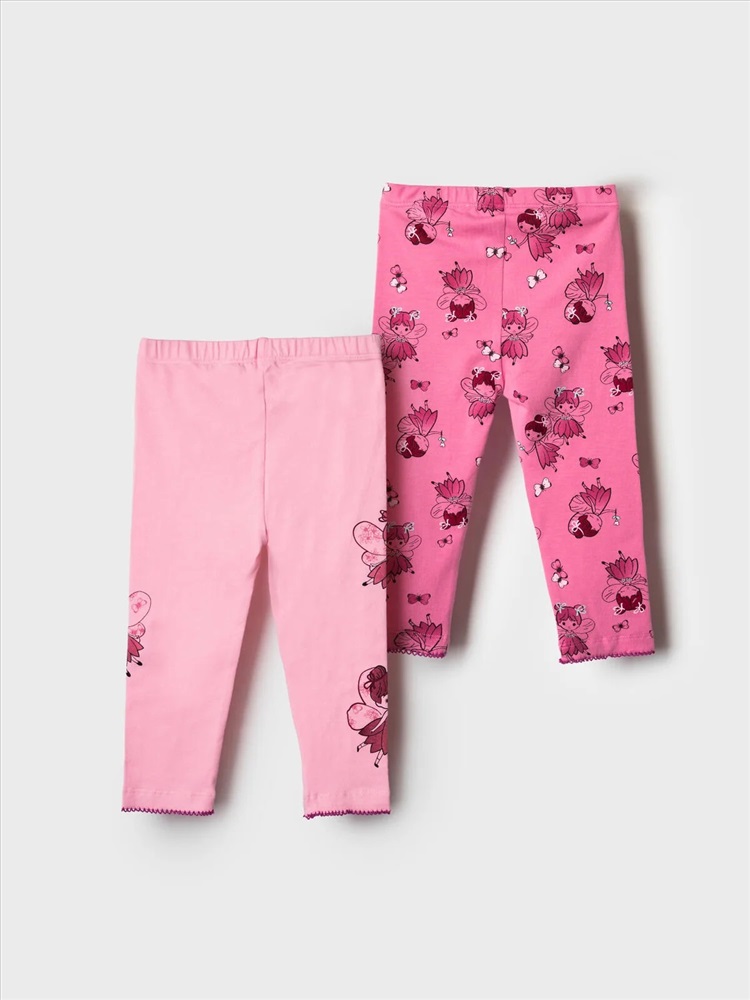 Набор детских легинсов для девочки. Комплект состоит из двух пар длинных легинсов. Принт с цветами в нежно-розовых оттенках. Обе модели имеют высокую посадку и эластичный пояс, который хорошо фиксирует изделие на талии. Материал - мягкий, хлопковый трикотаж.