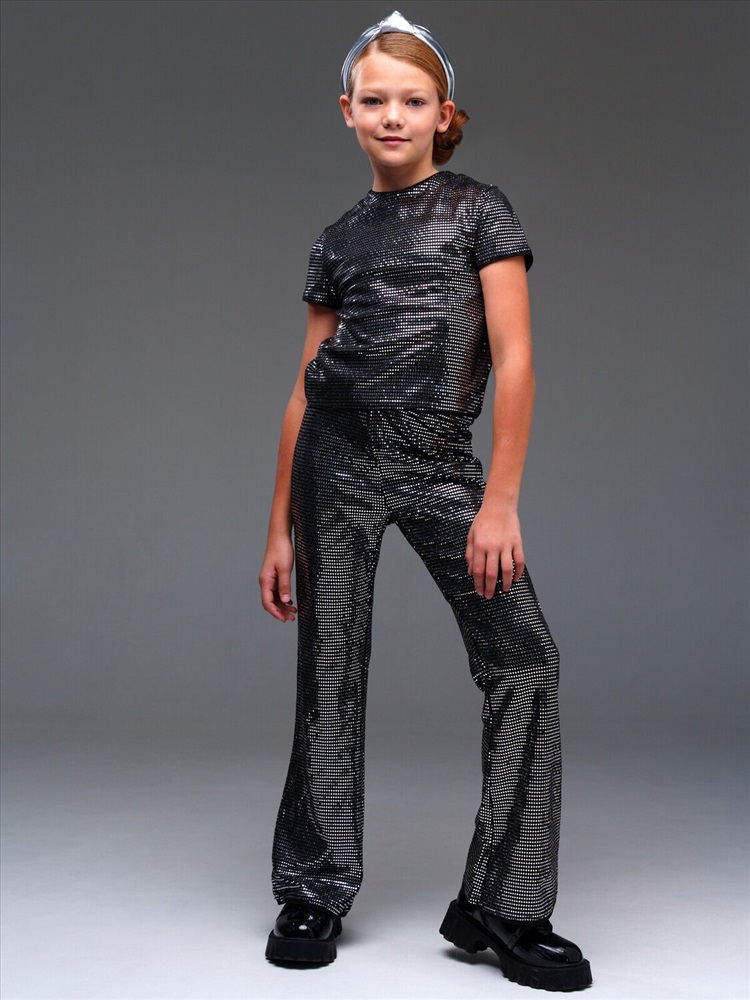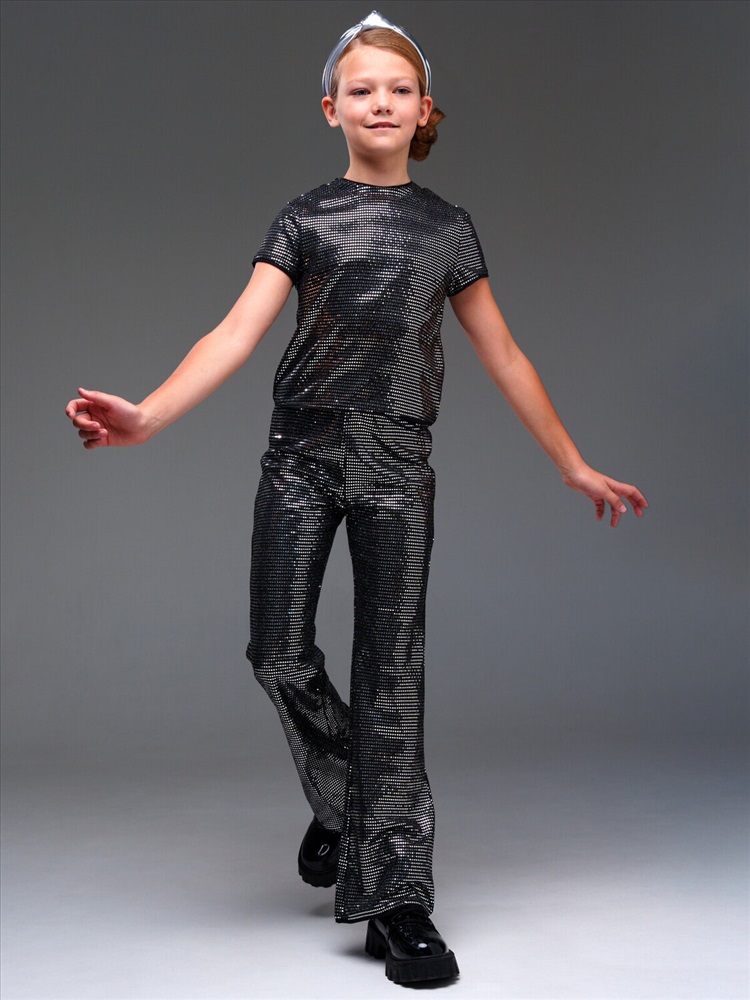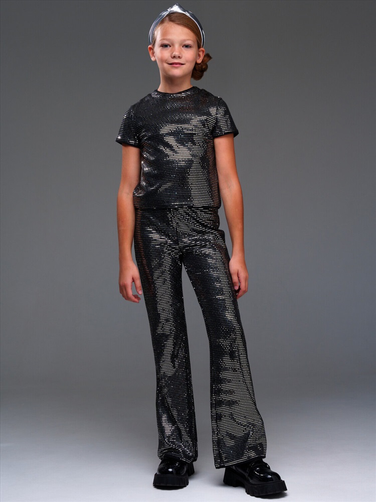 Брюки на резинке для девочки подростка. Стильные брюки с паетками отлично в пишутся в праздничный образ (новый год, день рождения).