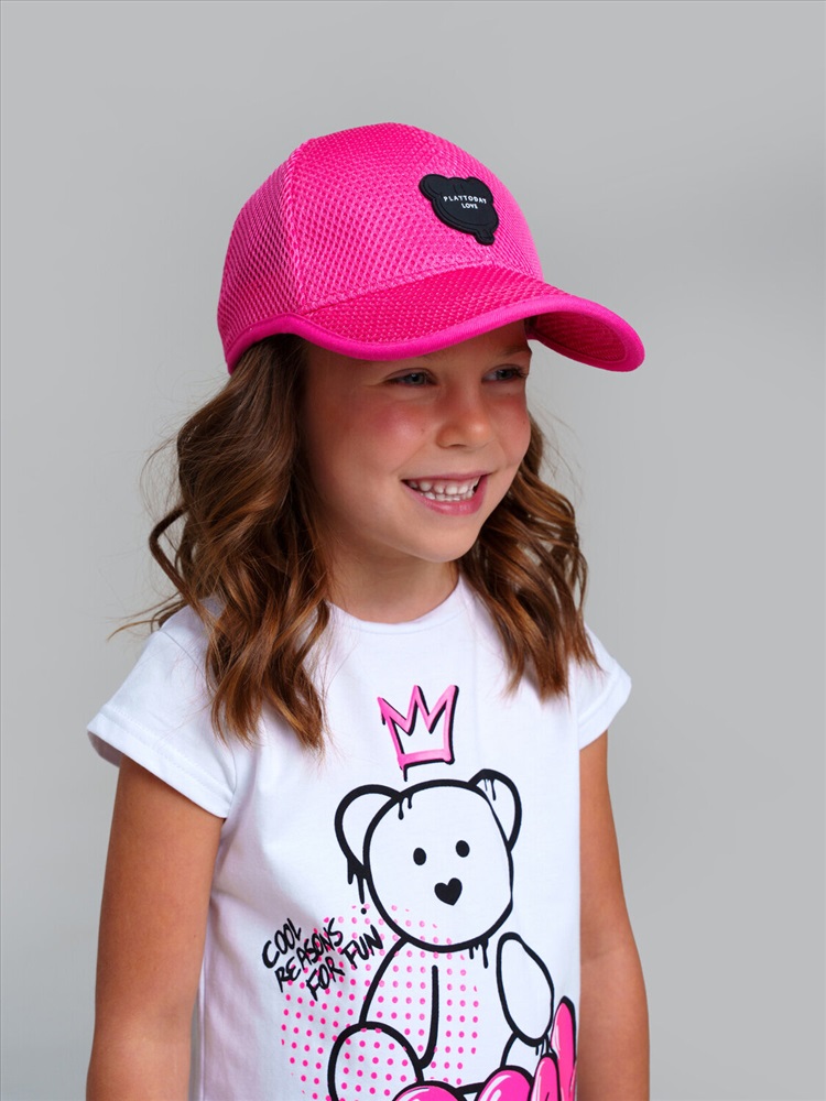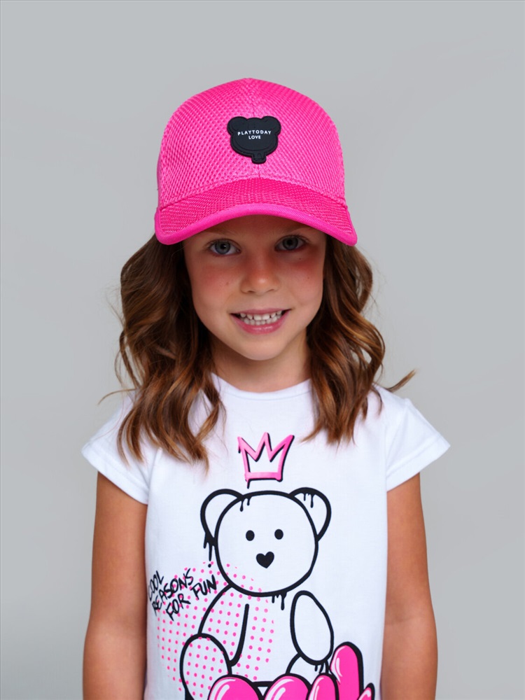 Кепка детская для девочки. Изогнутый козырек защищает глаза от солнца и сохраняет лицо в тени. Регулировка ширины застежкой на кнопки. Сетка.