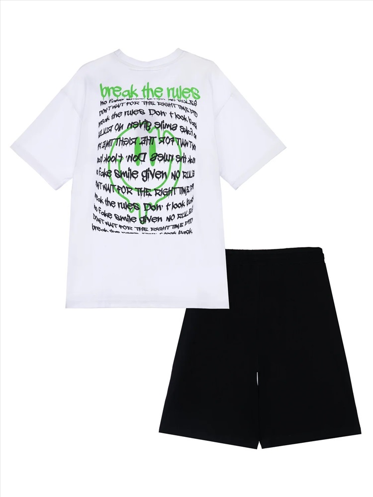 Комплект: футболка и шорты из качественного эластичного и приятного на ощупь трикотажа. Посадка comfort fit – свободный крой. Шорты с карманами в боковых швах; эластичный пояс со шнурком. Высокое содержание хлопка 95%. Благодаря наличию эластана в составе ткани изделие держит форму и меньше мнется.