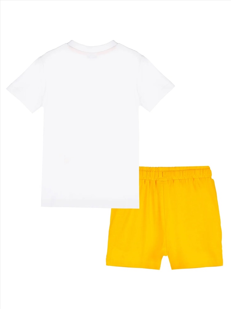 Комплект: футболка и шорты из качественного эластичного и приятного на ощупь трикотажа. Футболка выполнена из трикотажа разных цветов. Шорты с карманами в боковых швах. Эластичный пояс со шнурком. Посадка regular fit – классический крой. Высокое содержание хлопка 95%. Благодаря наличию эластана в составе ткани изделие держит форму и меньше мнется.