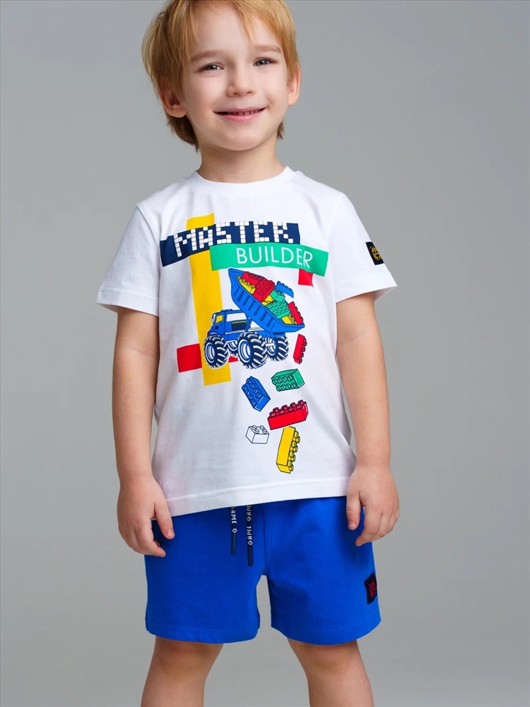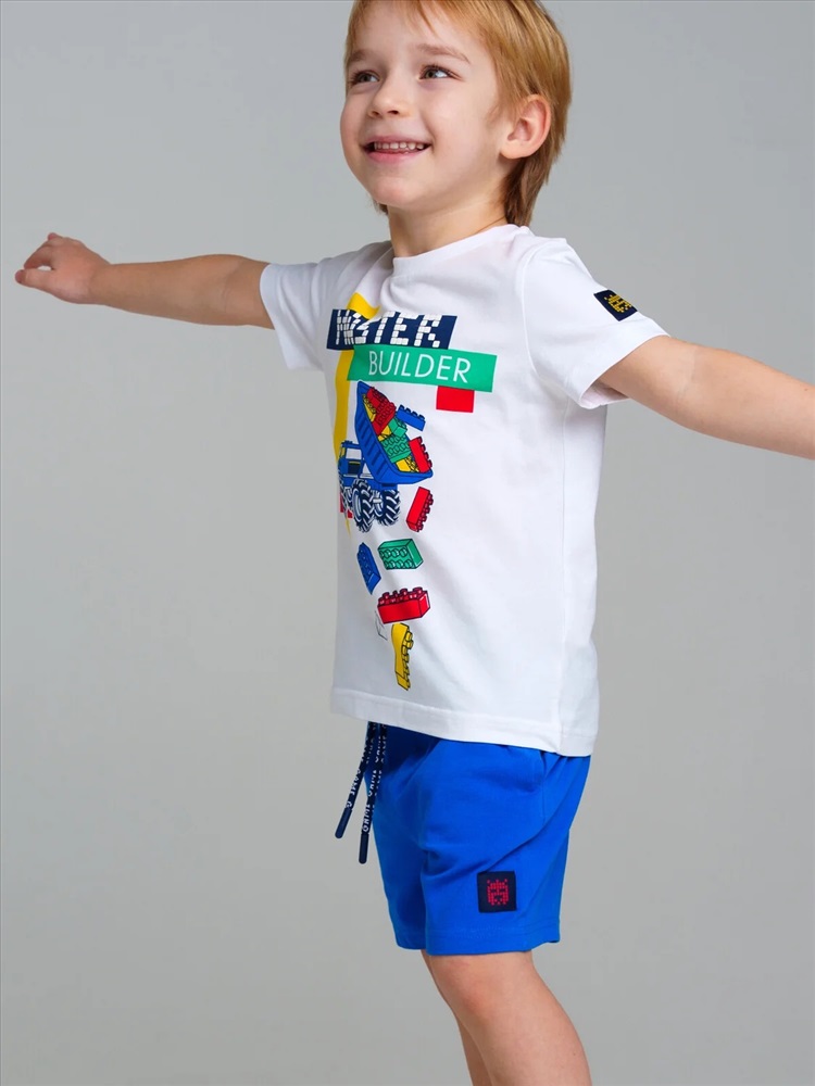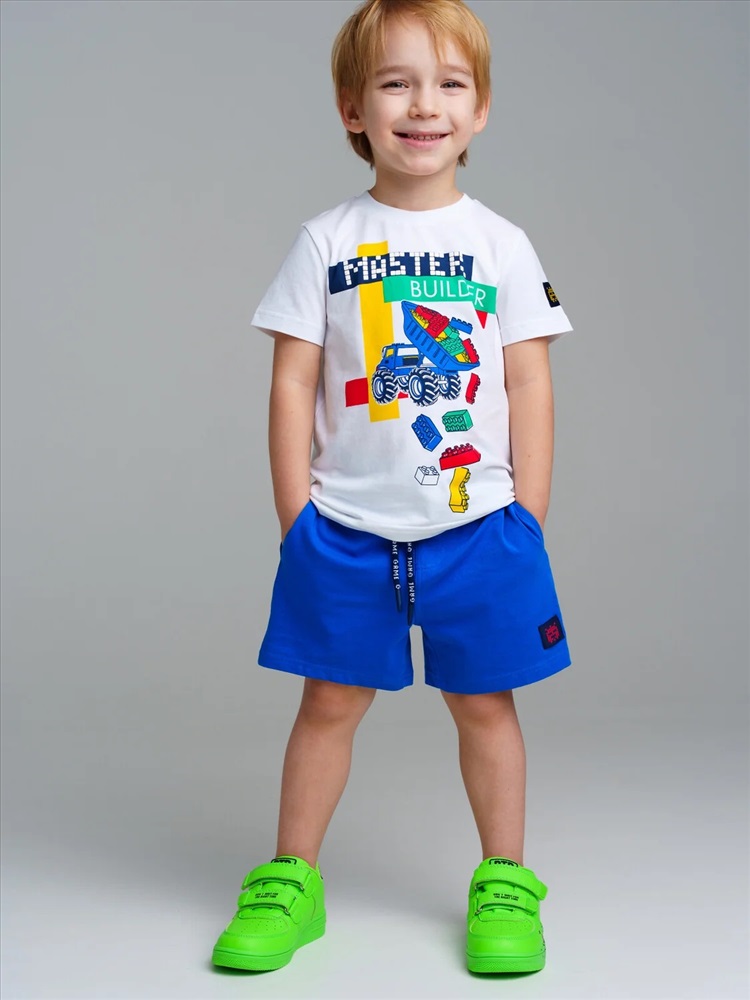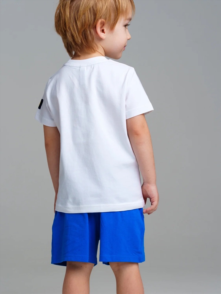 Комплект трикотажный: футболка, шорты. Высокое содержание хлопка 95%. Благодаря наличию эластана в составе ткани изделие проще в уходе и держит форму. Оптимальная посадка: шорты не сползают при движении. Эластичный пояс со шнурком. Карманы.