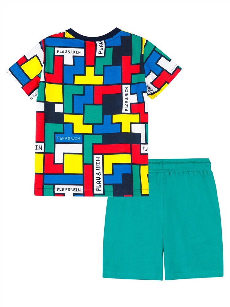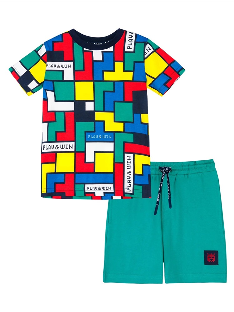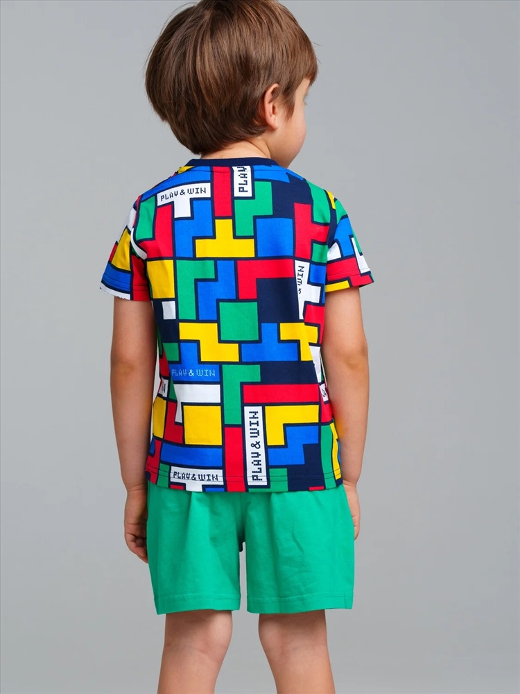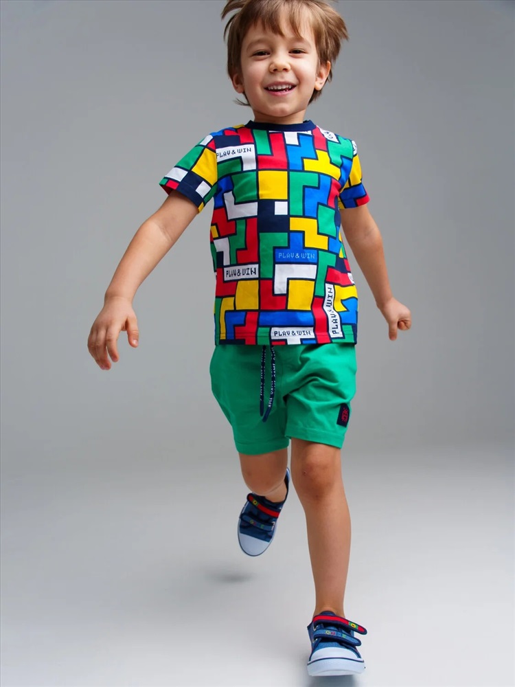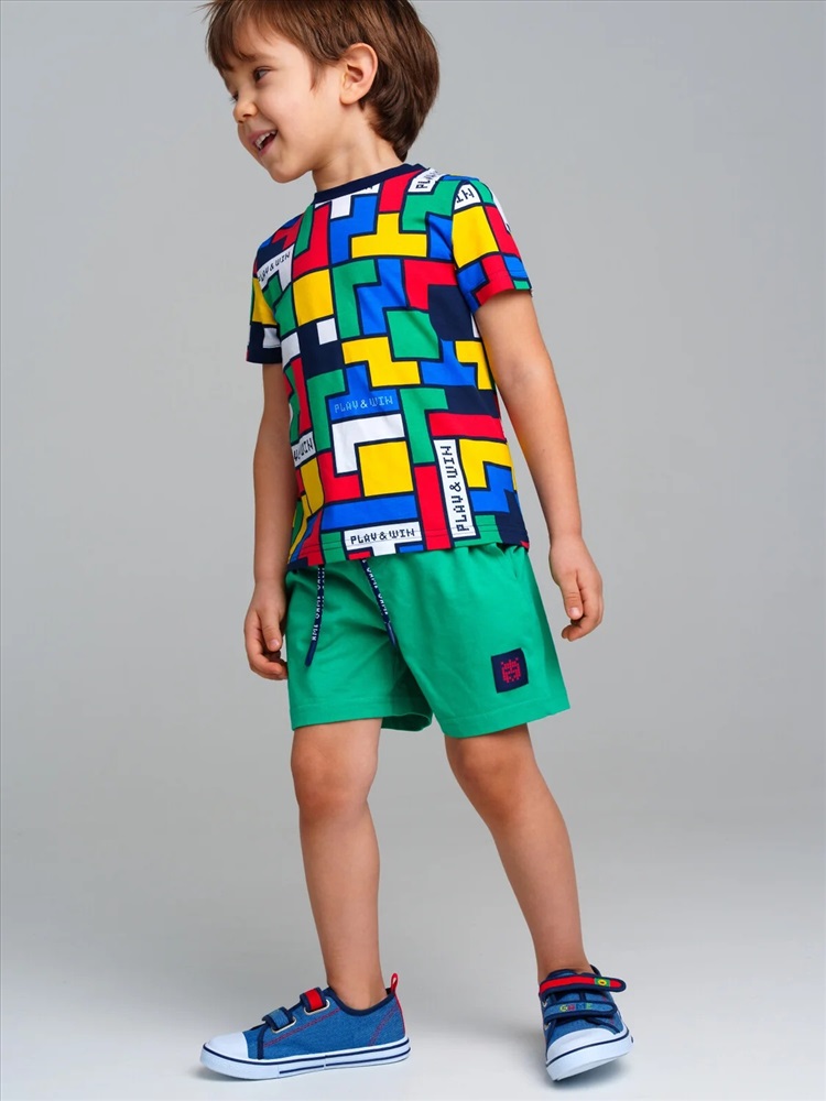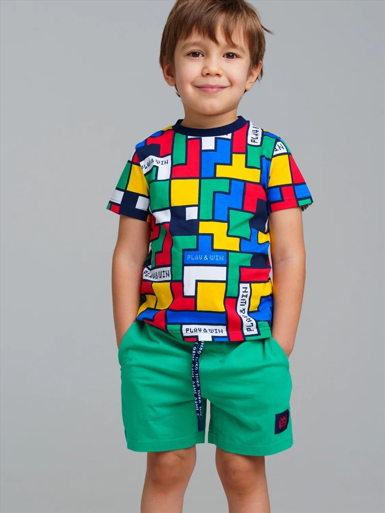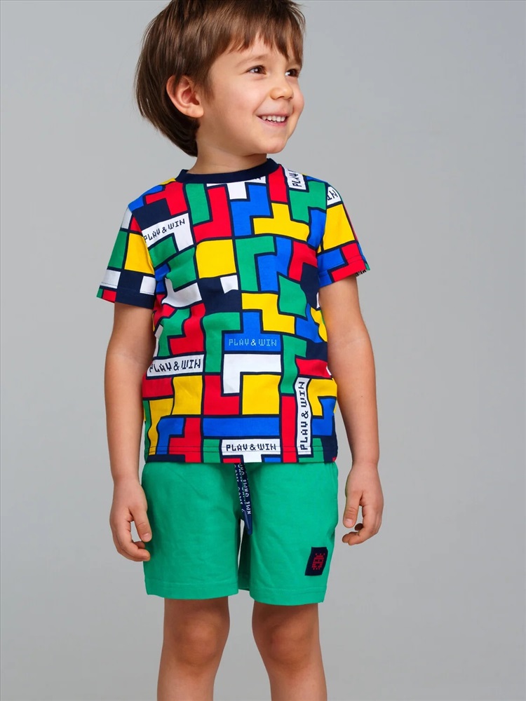 Комплект трикотажный: футболка, шорты. Высокое содержание хлопка 95%. Благодаря наличию эластана в составе ткани изделие проще в уходе и держит форму. Оптимальная посадка: шорты не сползают при движении. Эластичный пояс со шнурком. Карманы.