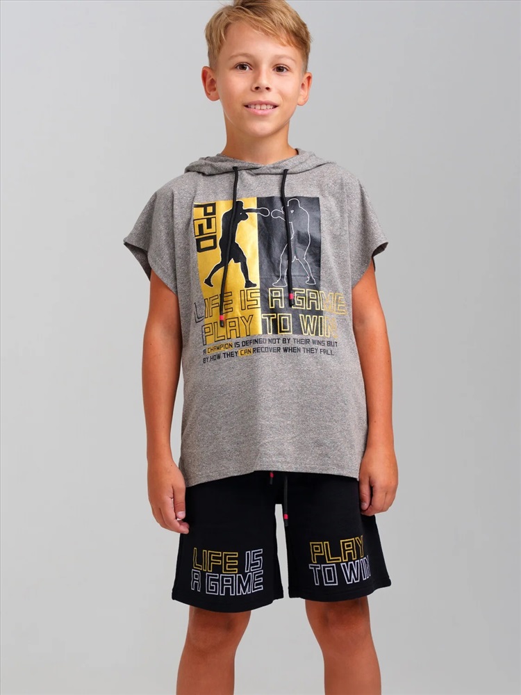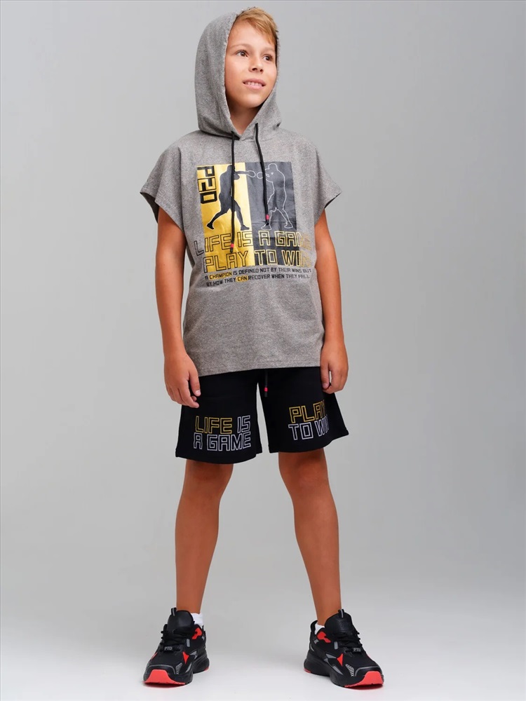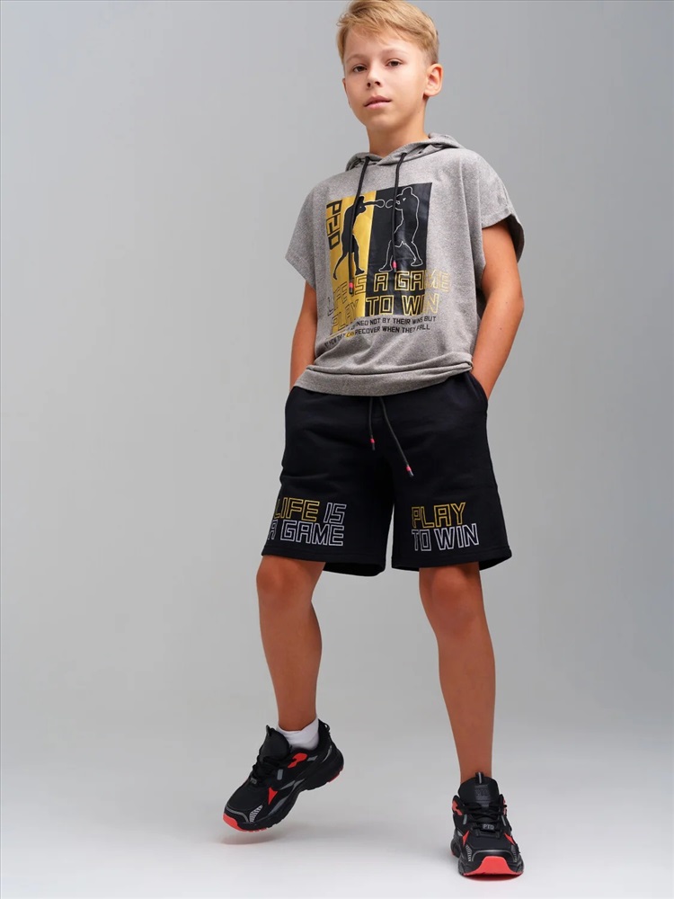Спортивный костюм в школу для мальчика подростка- необходимая составляющая для занятий физкультурой и спортом. Костюм прямого силуэта для школьника отлично подойдет для физкультуры как на улице, так и в зале. Трикотажный спортивный школьный костюм с высоким содержанием хлопка. Шорты на резинке с дополнительной утяжкой шнурком. Функциональные боковые карманы. В сочетании с футболкой с капюшоном составляют стильный полноценный комплект, мотивирующий на движение.