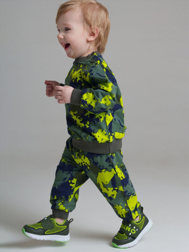 Костюм детский спортивный для мальчика. Комплект: свитшот, брюки с высоким содержанием хлопка. Штаны на резинке со шнурком. Функциональные боковые карманы. Модель выполнена из качественного и приятного на ощупь трикотажа.