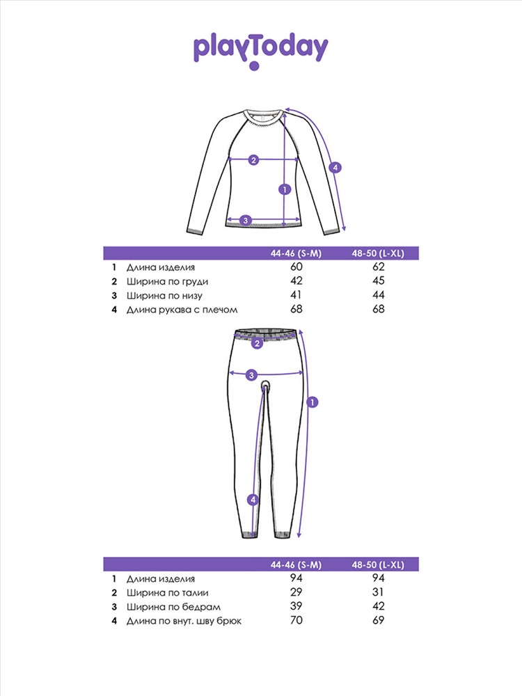 Термобельё отлично сочетается с утеплёнными мембранными комплектами и комбинезонами, зимними брюками и куртками PlayToday. Для создания уютного и функционального образа добавьте флисовую толстовку или жилет. Можно использовать и как пижаму для холодных ночей.