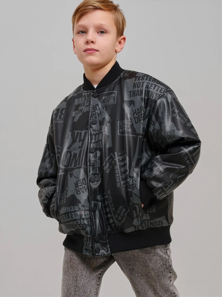 Бомбер для мальчика подростка.Бомбер из экокожи. Температурный режим до 0°С*. Линия температурного режима DEMI. Идеально подходит для весны и осени. Внутренняя ветрозащитная планка. Трикотажные манжеты. Низ изделия на резинке. Два боковых кармана.
