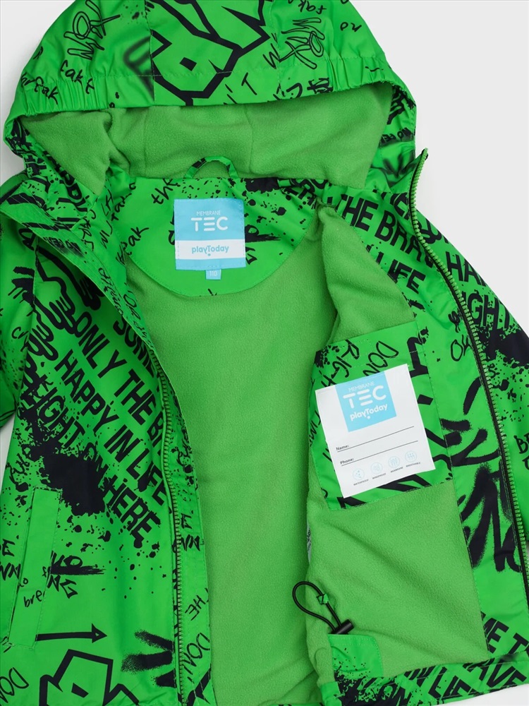 Ветровка детская на флисовой подкладке для мальчика. Температурный режим до +10°С*. Линия температурного режима X-LIGHT. Идеально подходит для весны и теплой осени. Водоотталкивающее и ветронепродуваемое покрытие. Внутренняя ветрозащитная планка. По низу рукава резинка. Регулировка объёма утяжкой со стопперами. Два боковых кармана на липучке. Внутренний карман на липучке. Несъемный капюшон с утяжкой стопперами. *Пожалуйста, обратите внимание, что указанный температурный режим является приблизительным и зависит от многих факторов, таких, как возраст, физическое состояние, уровень активности ребенка и количество слоев одежды. Время, проведенное на открытом воздухе, и погодные условия, такие как холодный ветер, могут повлиять на тепловые характеристики изделия. Убедитесь, что защищены от холода голова, руки и ноги.
