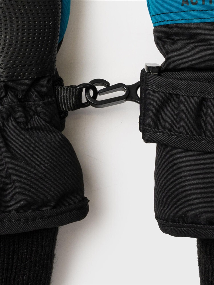 Вязаная манжета плотно фиксируется на запястье, не позволяя перчатке спадать или пропускать холодный воздух. Благодаря специальному креплению-петельке перчатки можно соединять друг с другом и вешать на куртку или комбинезон — удобно и безопасно.