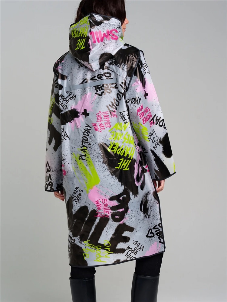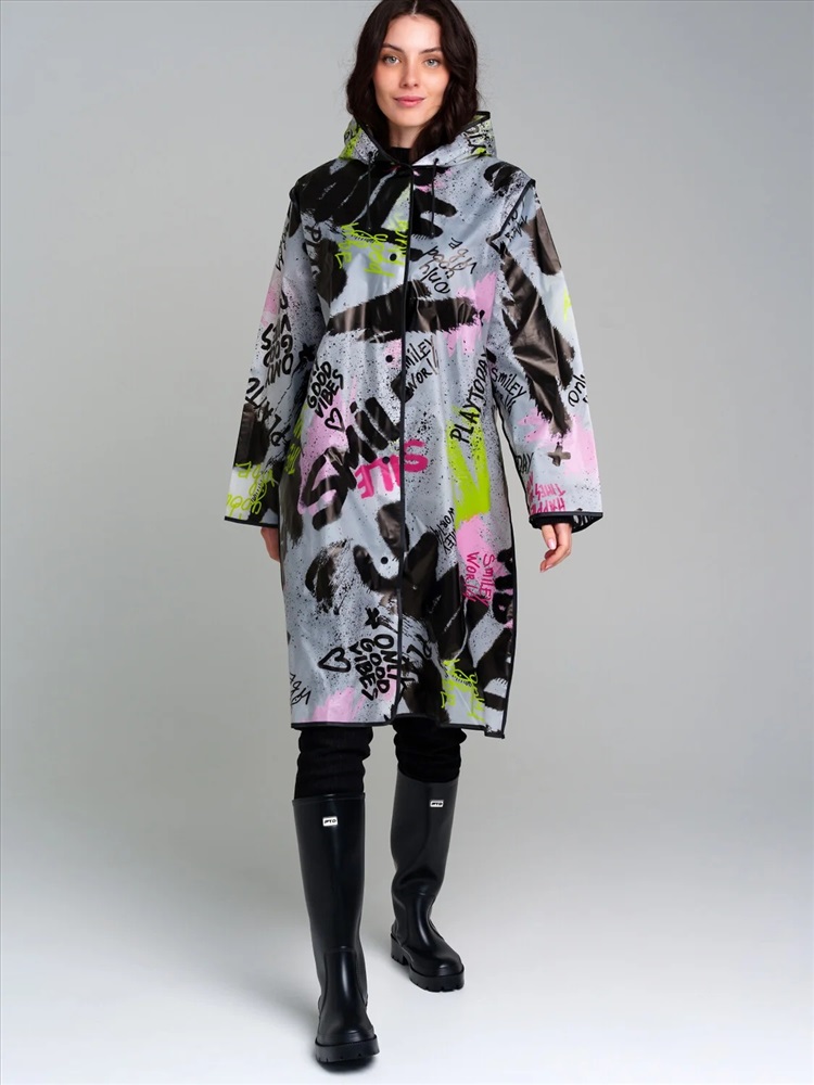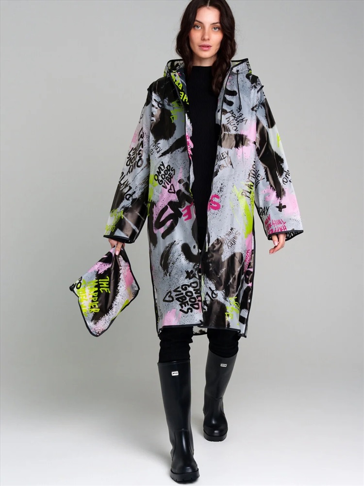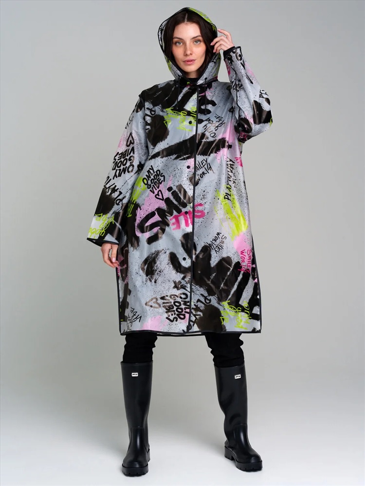 Плащ-дождевик с мешочком. Оптимальная длина. Застежка на кнопки. Добавлены петельки под капюшоном с внешней стороны, чтобы остальные вещи на вешалке не намокали. Модель унисекс.