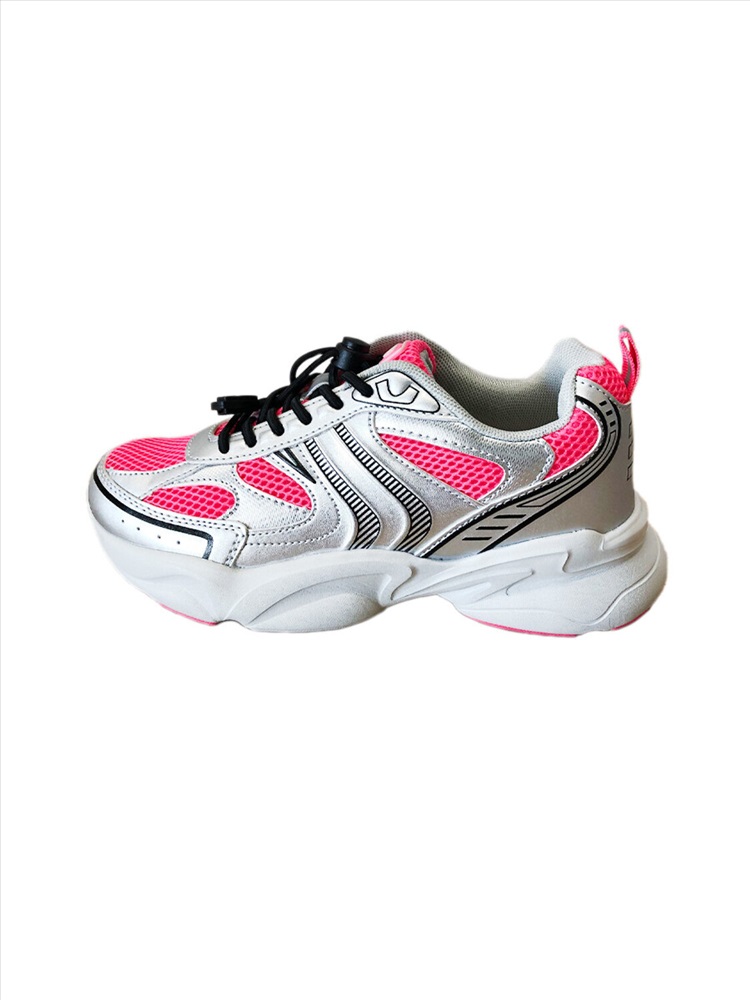 Трендовые кроссовки для девочки подростка. Модель на эластичном шнурке с утяжкой. Верх обуви выполнен из крупной дышащей сетки и искусственной кожи. В носочной части обуви стоит текстильная подкладка c высоким содержанием хлопка 80%, которая обладает высокой гигроскопичностью. В пяточной части обуви текстильная подкладка обладает хорошей износостойкостью. Профилированная съемная стелька из свиной кожи с анатомической формой подсводника обеспечивает правильную нагрузку на стопу. Формоустойчивый задник поддерживает стопу в правильном положении. Эргономичная форма колодки обеспечивает правильное формирование стопы ребенка. Двухсоставная подошва из ЭВА и ТПР легкая, гибкая и имеет хорошие амортизационные свойства. Вставки из ТПР в носочной и пяточной частях предотвращают быстрый износ подошвы и делают ее нескользкой.
