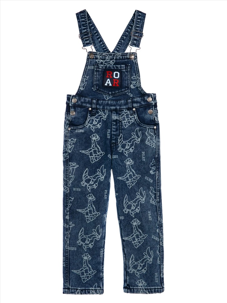 Джинсовый детский комбинезон comfort fit (свободная посадка) для мальчика. Модный джинсовый комбинезон на кнопках утепленный флисом. Внутренняя утяжка. Модель из капсульной коллекции DINO CLUB (ДИНО КЛАБ). Соберите полный образ в едином стиле! Комбинезон будет актуален для детского сада, в садик.