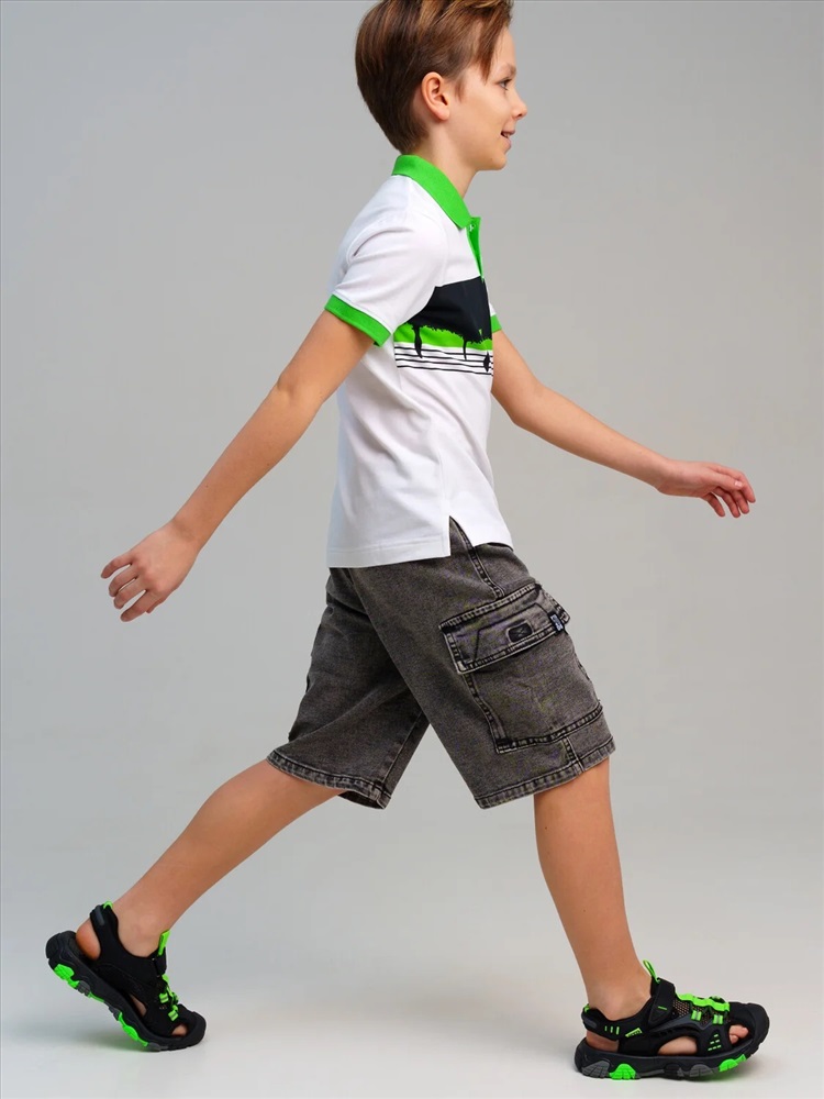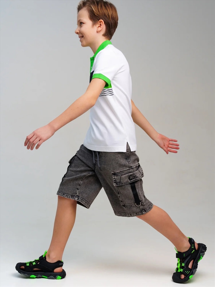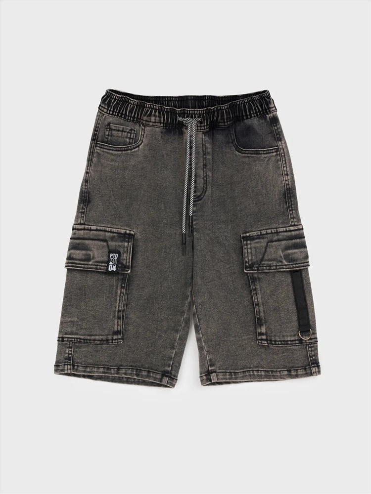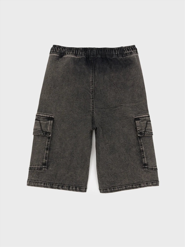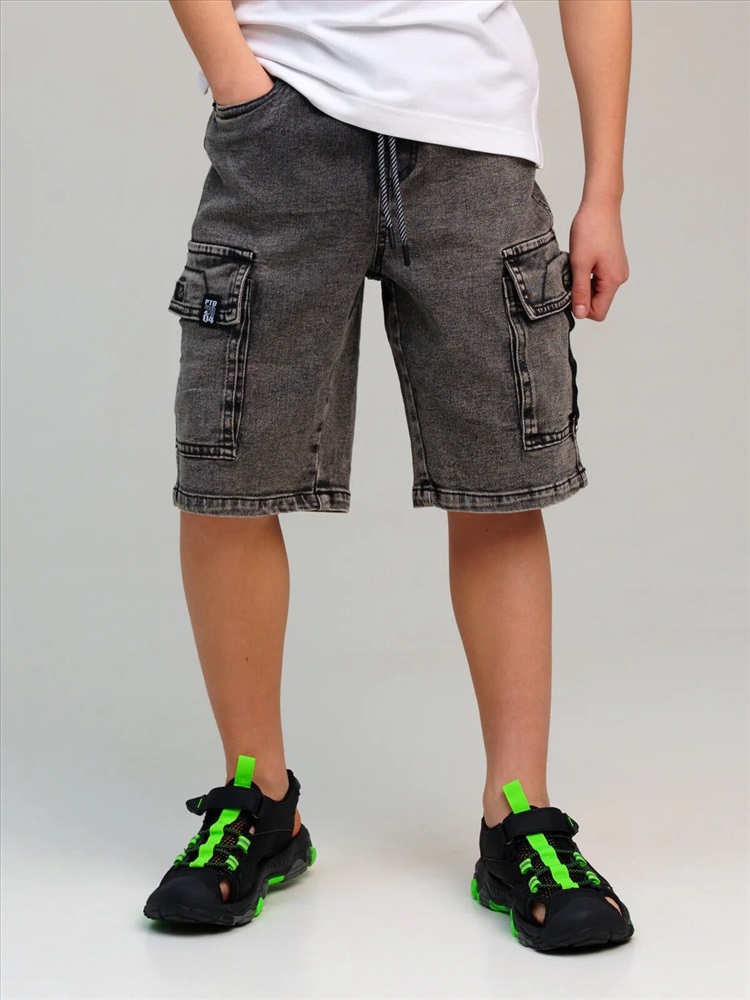 Джинсовые шорты для мальчика подростка. Шорты свободного силуэта на резинке со шнурком. Функциональные карманы. Модель выполнена из качественного и плотного текстиля.