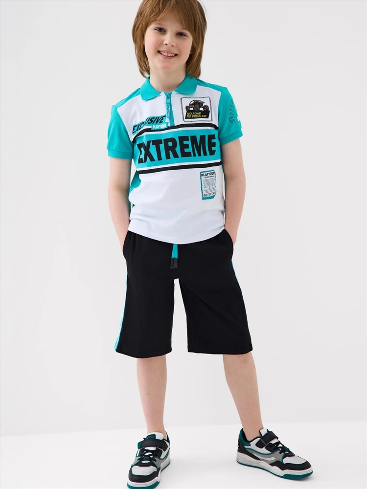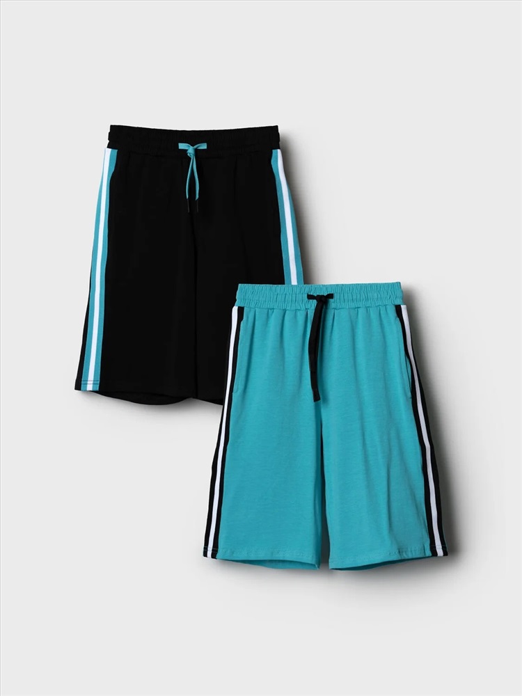 Набор шорт для мальчика подростка. В комплект входят две пары шорт свободного кроя, ниже колена. Модели из мягкого, хлопкового трикотажа джерси. Удобная посадка обеспечивается эластичным поясом со шнуром. По бокам расположены два кармана.