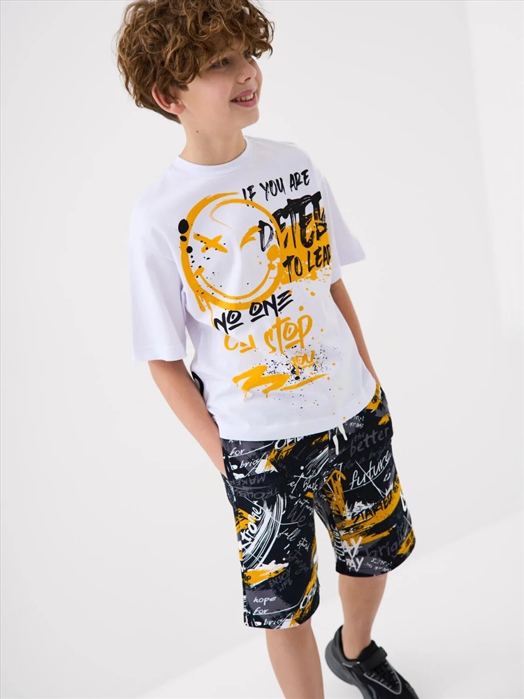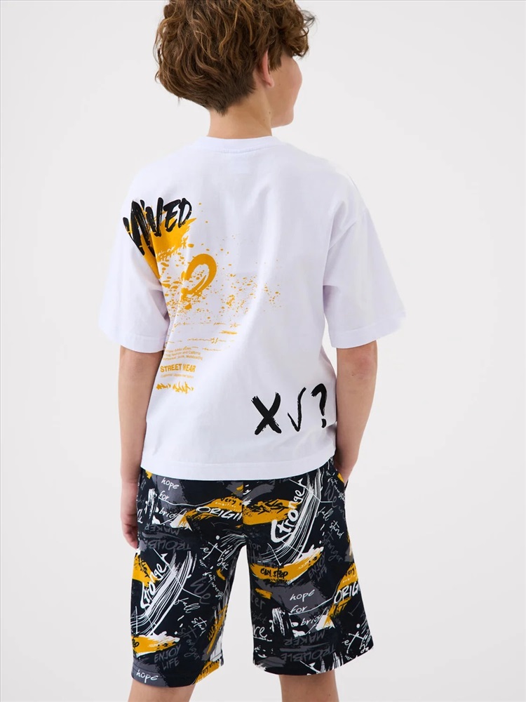 Шорты для мальчика подростка. Модель свободного кроя из мягкого, хлопкового трикотажа футер. Удобная посадка обеспечивается эластичным поясом со шнуром. Спереди — боковые карманы.