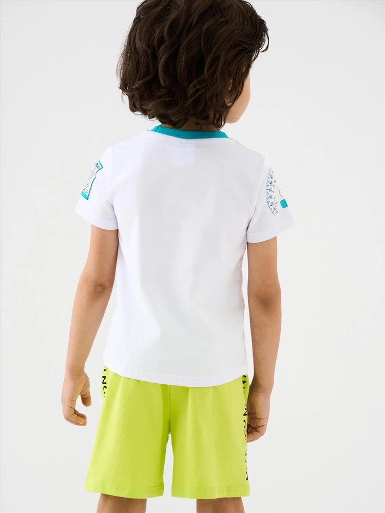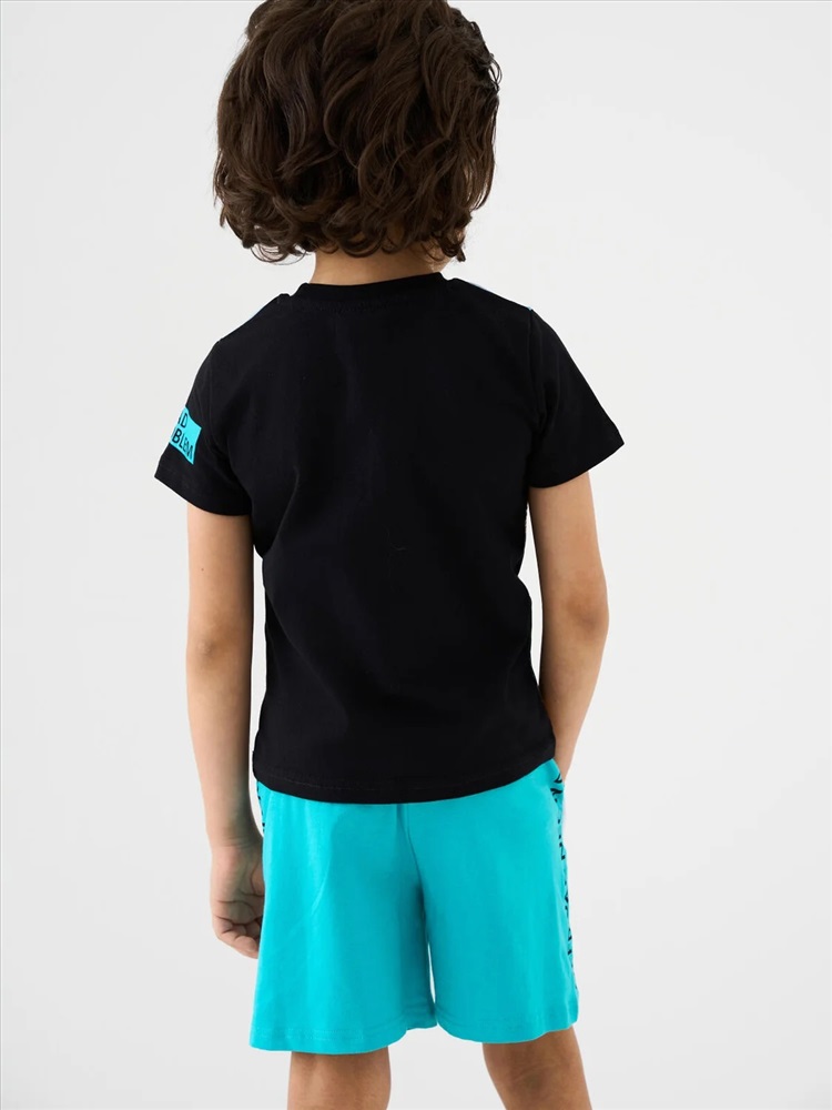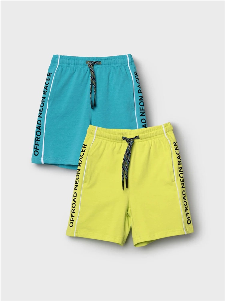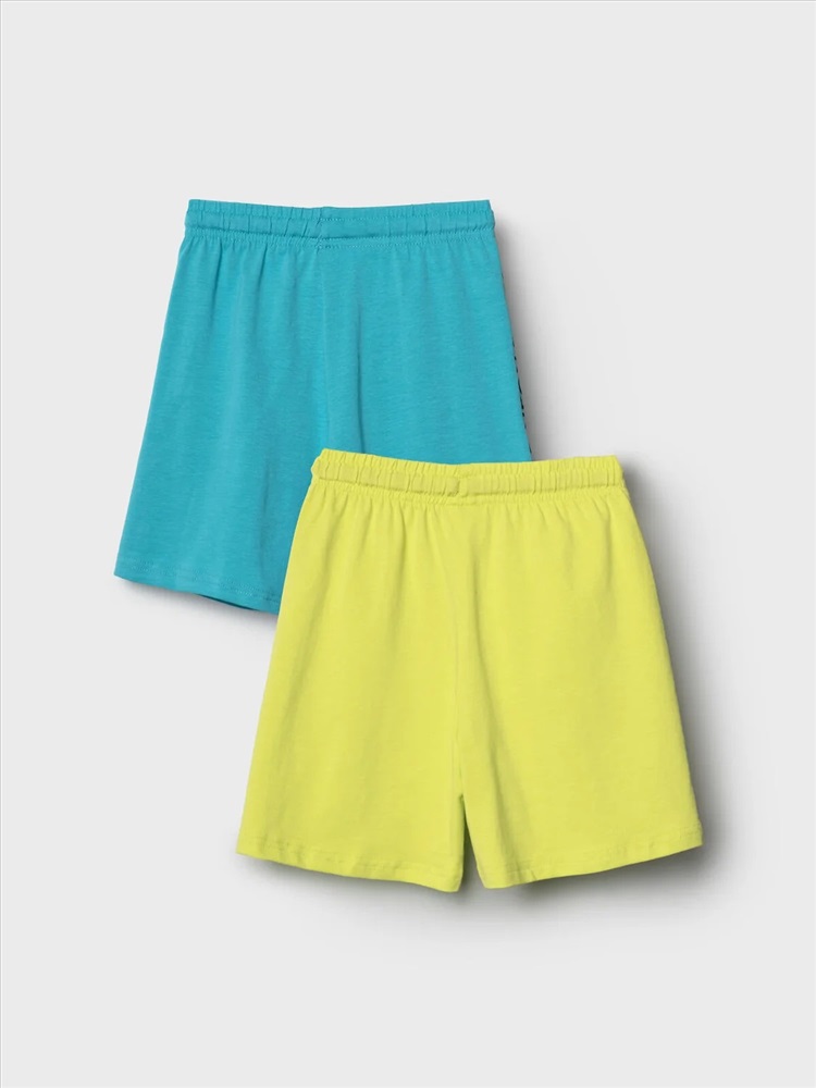 Набор детских шорт для мальчика. В комплект входят две пары шорт свободного кроя. Модели из мягкого, хлопкового трикотажа джерси. Удобная посадка обеспечивается эластичным поясом со шнуром. По бокам расположены два кармана.