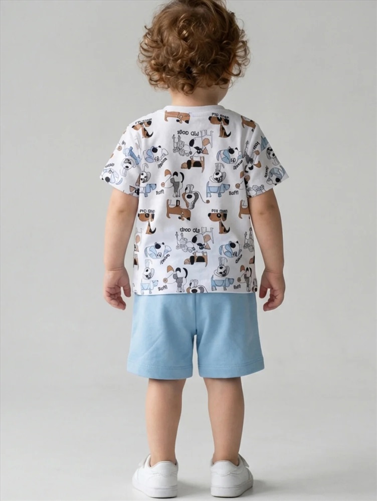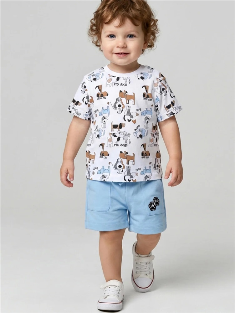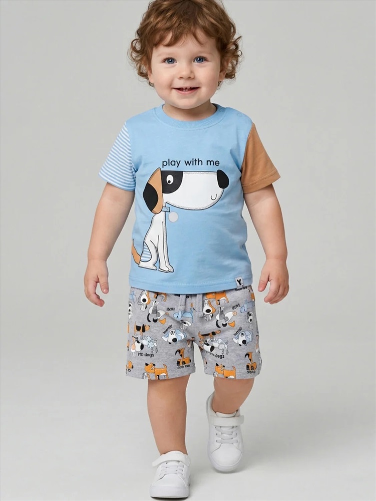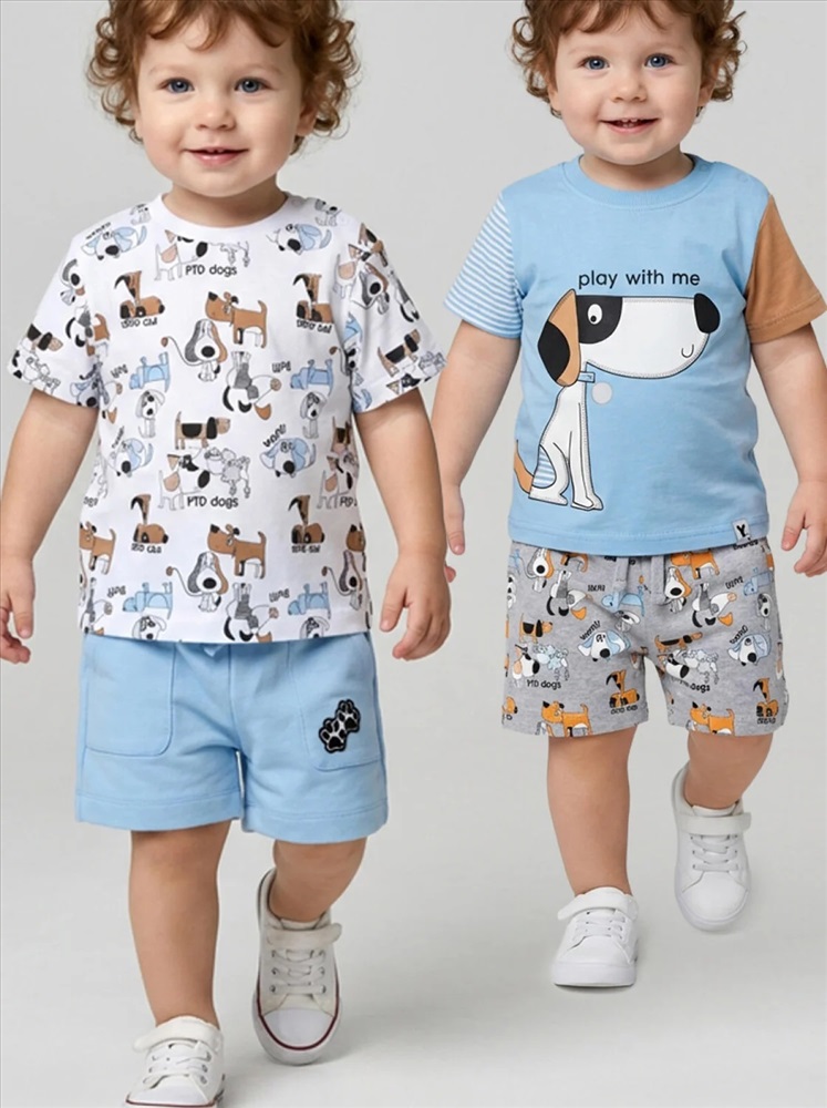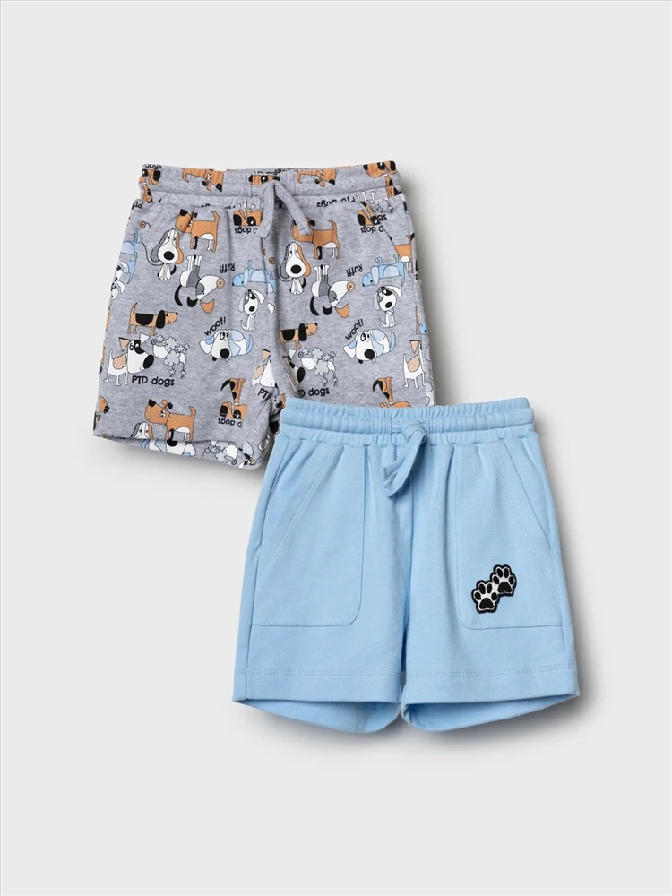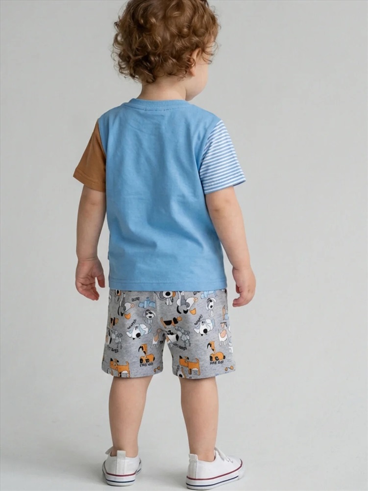 Набор детских шорт для мальчика. В комплект входят две пары шорт свободного кроя. Модели из мягкого, хлопкового трикотажа интерлок. Удобная посадка обеспечивается эластичным поясом со шнуром. По бокам расположены два кармана.