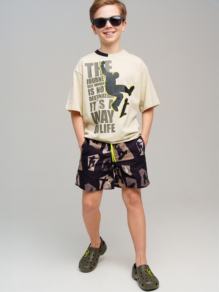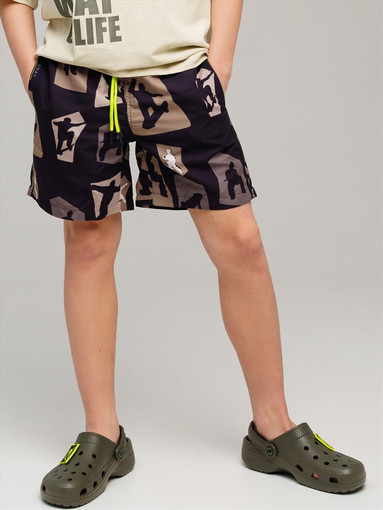Плавательные шорты из быстросохнущего материала с водоотталкивающей пропиткой для мальчика подростка. Бордшорты для мальчика подростка (swimshort) длинные. Модель с подкладкой из мягкой сетки в виде трусов, карманы из сетки. Пояс на резинке с дополнительной регулировкой по талии шнурком. Благодаря UF-защите, ткань сохраняет первоначальный вид даже при длительном пребывании на солнце.