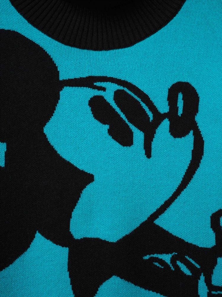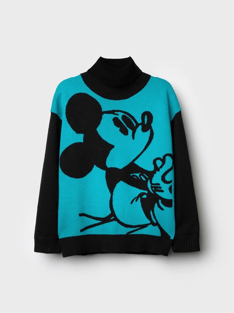 Этот свитер легко сочетается с базовыми джинсами, спортивными или утеплёнными брюками. Яркий цвет отлично освежает образ, а узнаваемый принт Disney добавляет игривости и индивидуальности. Для выхода на прогулку можно добавить жилет, куртку или пуховик.
